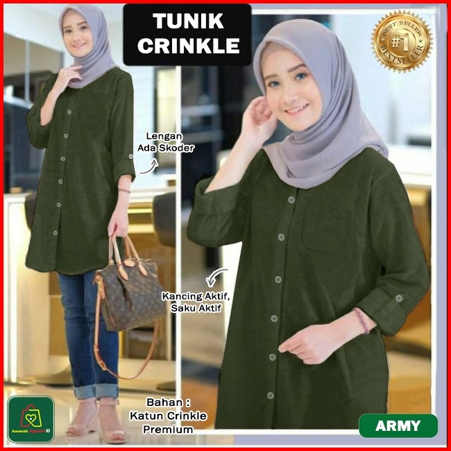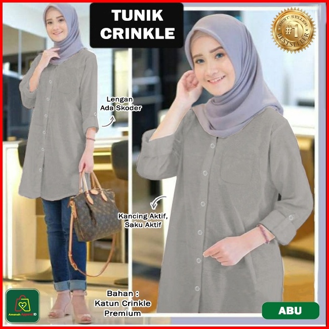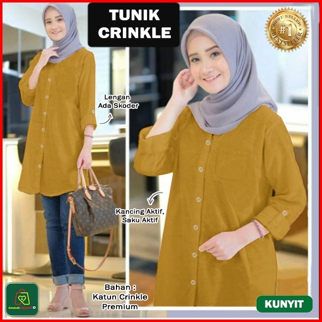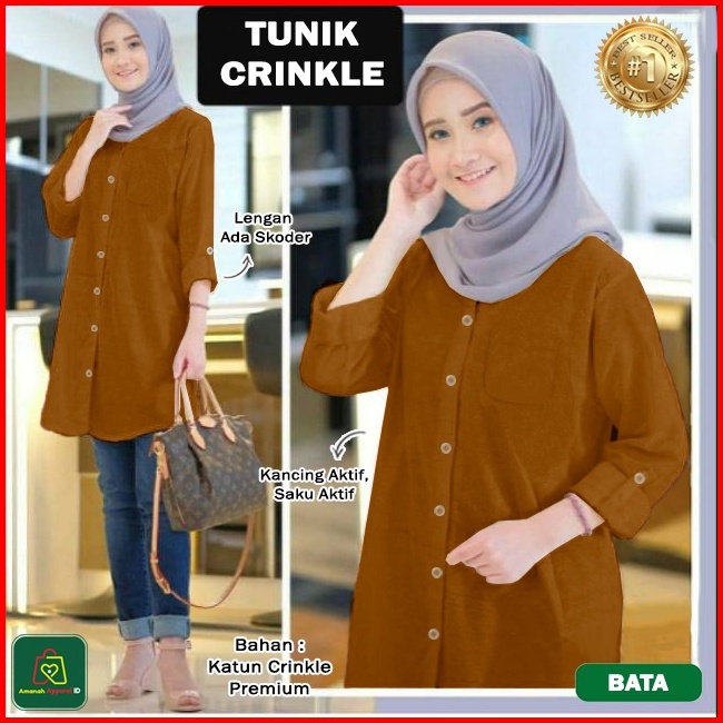 Baju Atasan Wanita Muslim Tunik Crinkle Katun Premium Jumbo Ukuran Xl-3xl 28562-28568