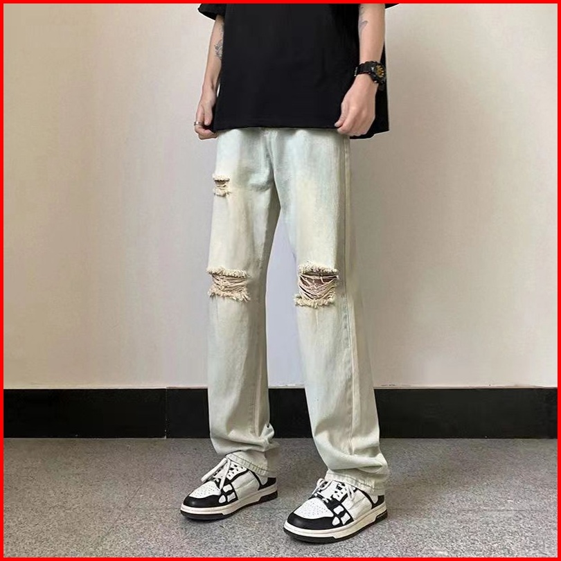 Celana Jeans Pria Sobek Retro Baggy Pants Celana Denim Panjang Dewasa Cowok Robek Casual Size S-3xl Korean Style