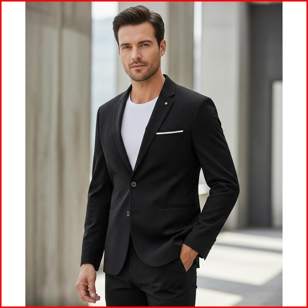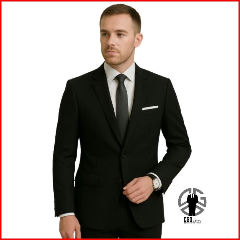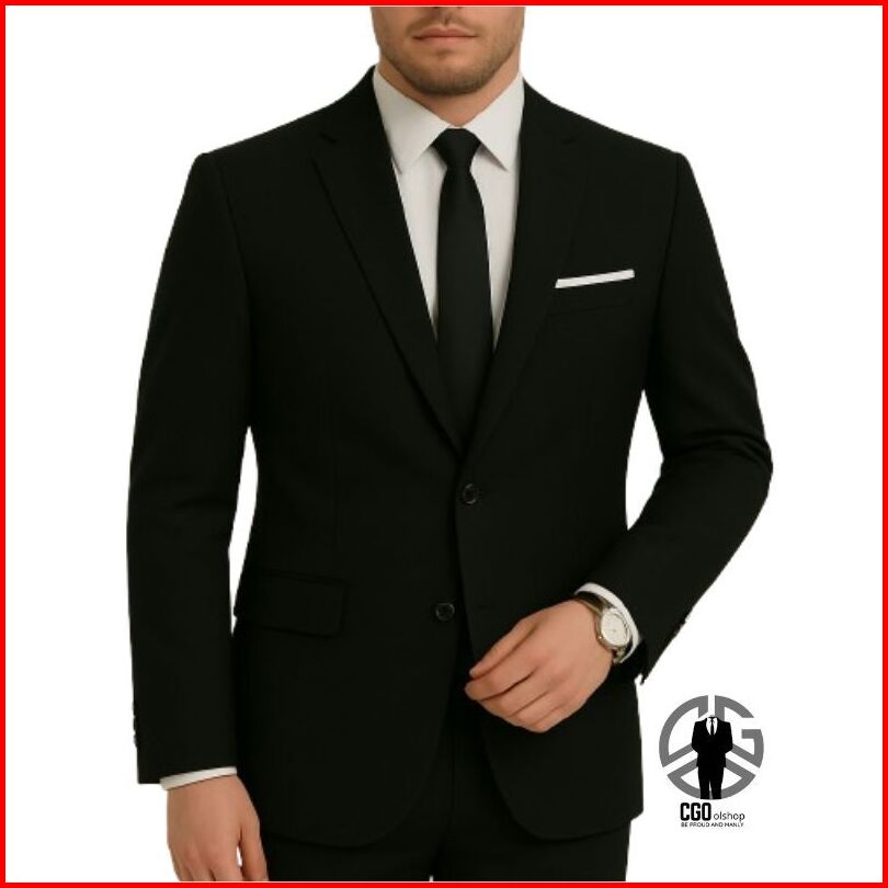 Blazer Formal Pria Hitam List Putih Kancing Dua Kantoran Jas Formal Hitam
