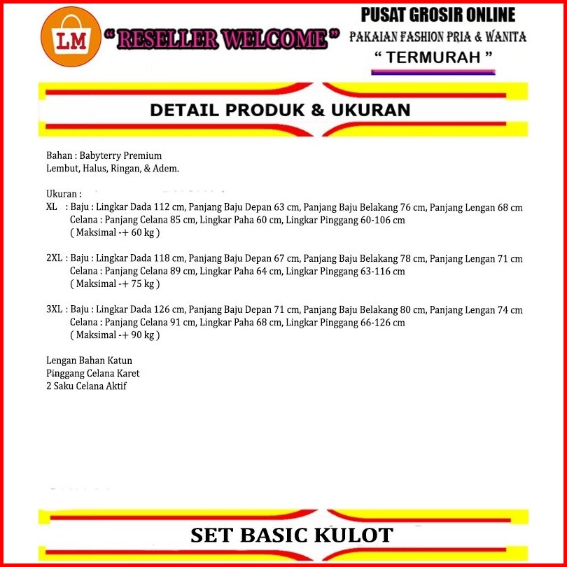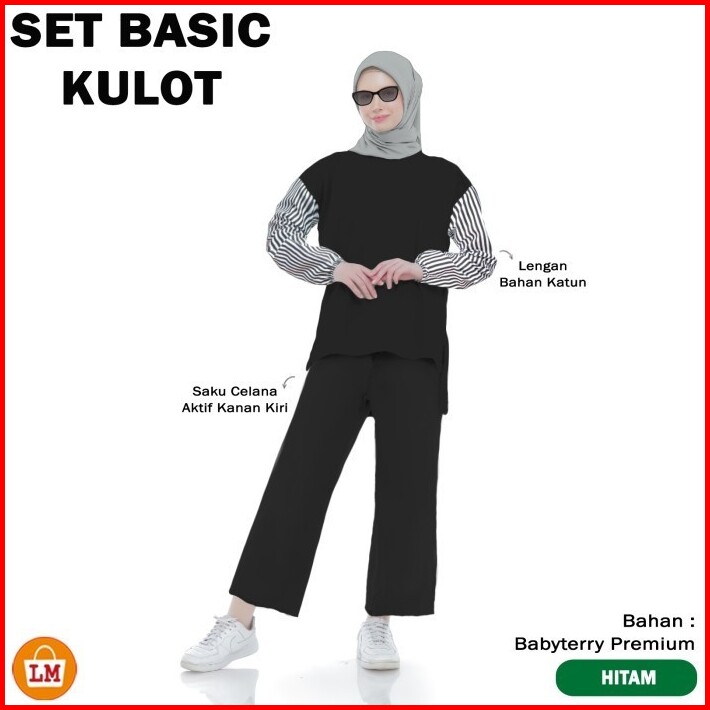 Kaos Setelan Wanita Set Basic Kulot Lengan Panjang Bahan Babyterry Premium Adem Size Xl Xxl Xxxl 36263