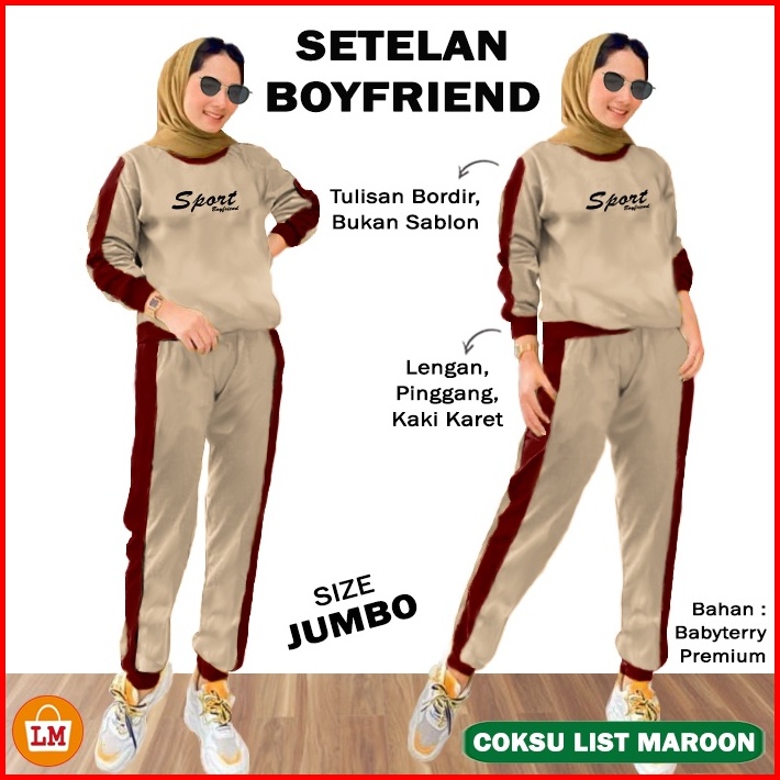 Setelan Kaos Sport Boyfriend Training Olahraga Wanita Babyterry Big Size Oversize Jumbo Size Xl - Xxl 28362 - 28366
