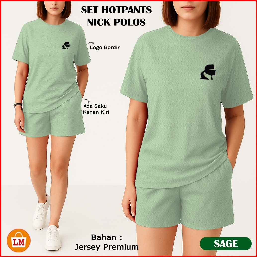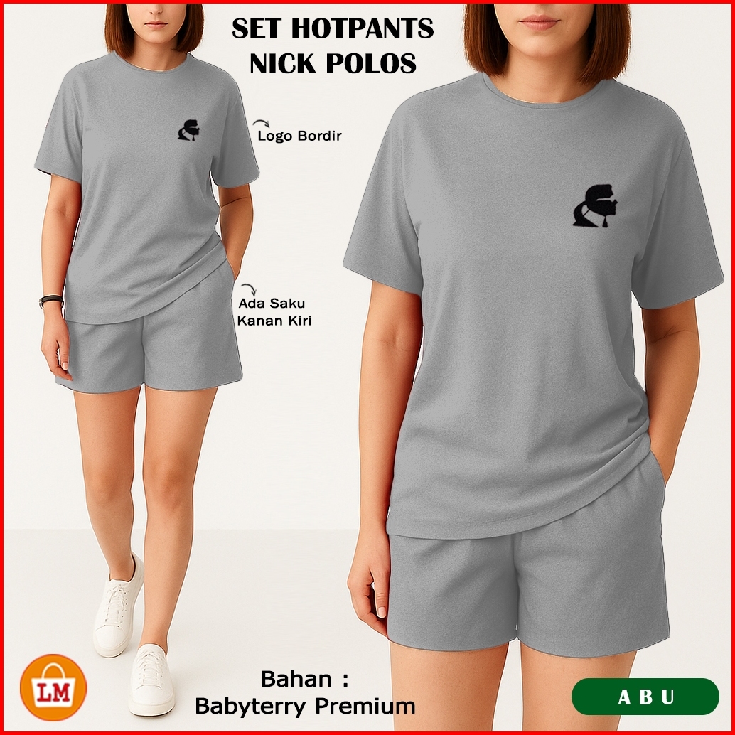 Setelan Hotpants Nick Polos Kaos Celana Santai Wanita Lengan Pendek Bahan Babyterry Premium All Size Fit To Xl 25245 Hot