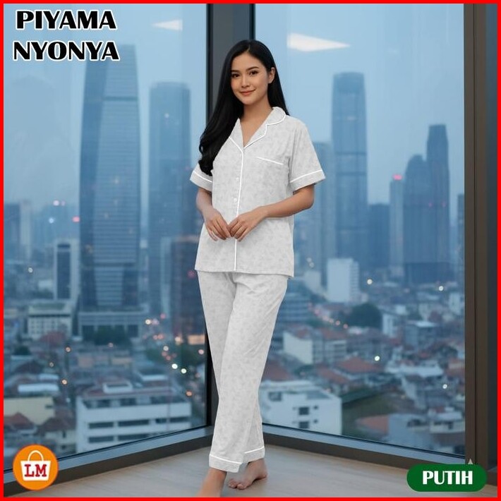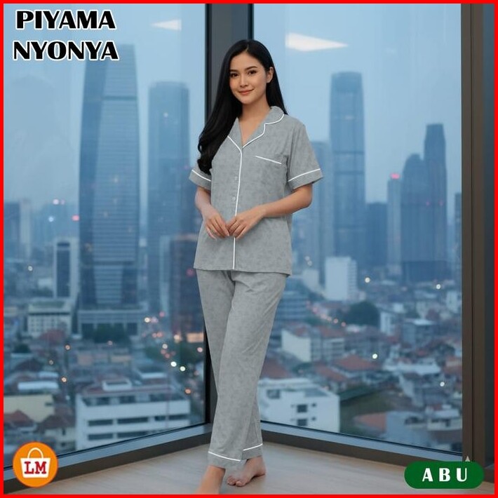 Piyama Set Setelan Pakaian Tidur Wanita Bahan Katun Emboss Premium Adem Size L Xl Xxl Lengan Pendek Celana Panjang