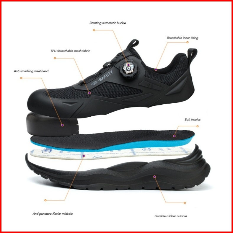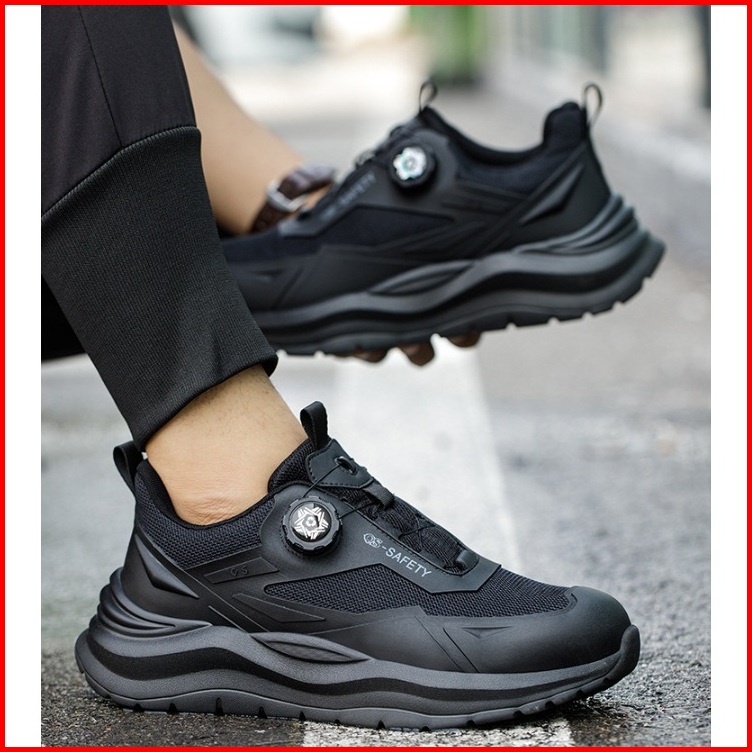 Sepatu Safety Qs 2025 Ujung Besi Tali Putar Simple Shoelace Anti Smash Anti Slip Oil Flexibel Super Ringan Sepatu Safety