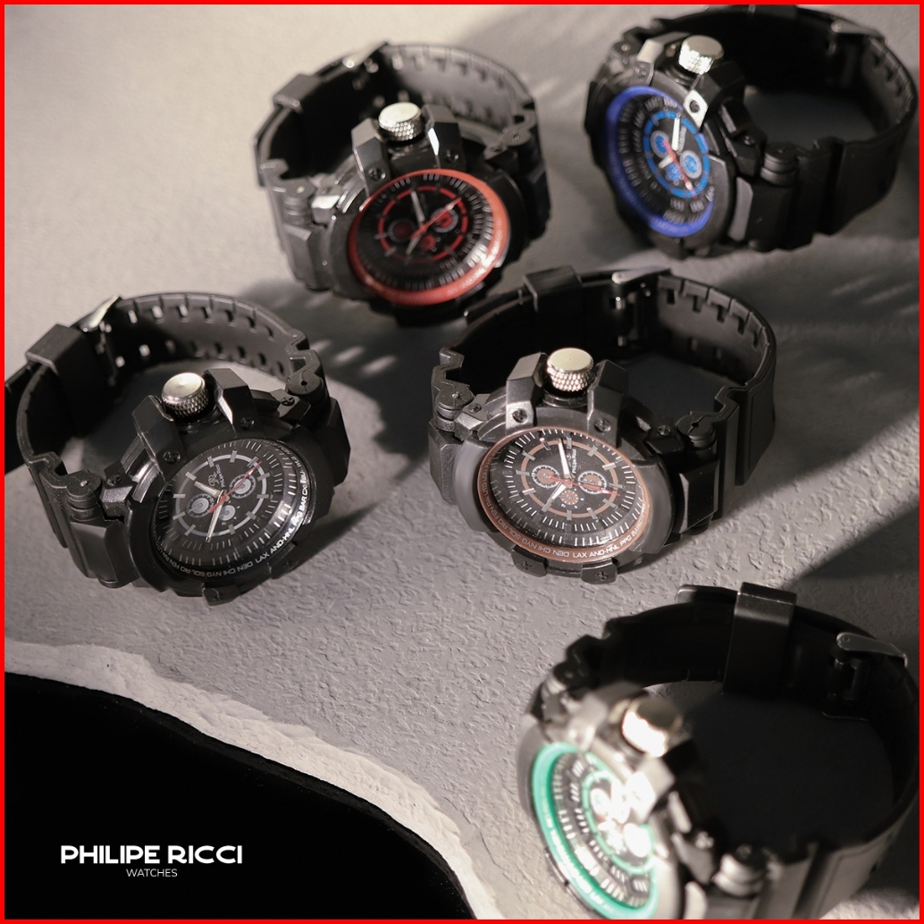 Philipe Ricci Jam Tangan Pria Analog Strap Tali Karet Hitam Asli Model Simpel 1921x Men Watches