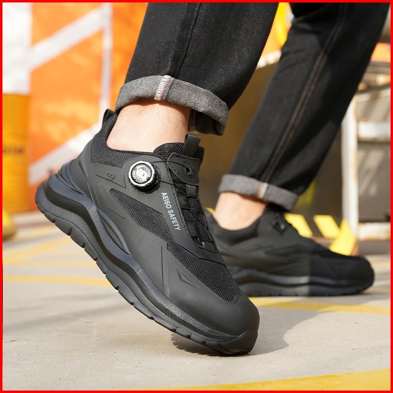 Sepatu Safety Tali Putar Ringan Hitam Casual Ujung Besi Anti Smashing Stab