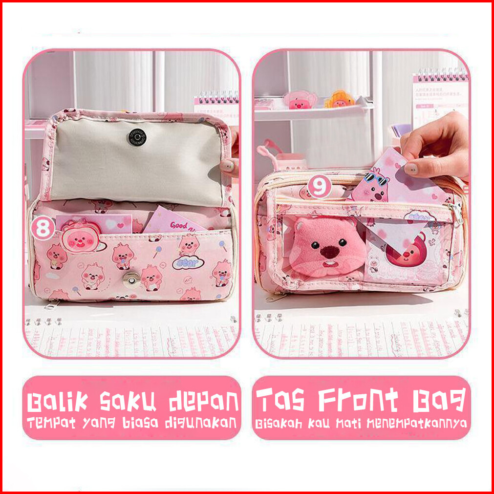 Loopy Tas Pensil Tempat Alat Tulis Pasukan Sekolah Pencil Case Aesthetic Kotak Pensil Capybara Tas Pena Tas Pensil Kapas
