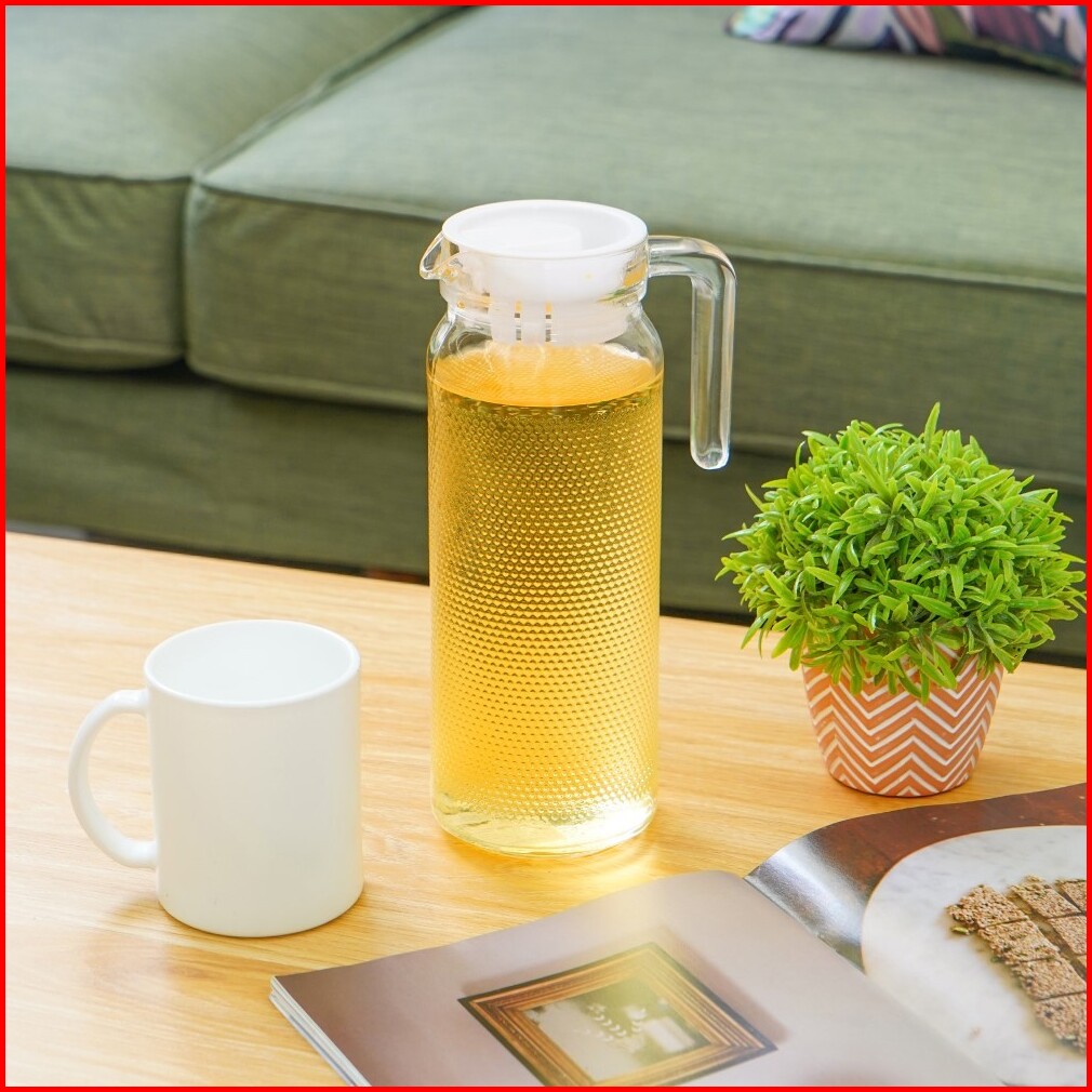 Selma 1 Ltr Jordi Teko Minum Kaca Water Jug Pitcher Dengan Tutup Dan Handle Peralatan Minum Wadah Penyimpanan Air