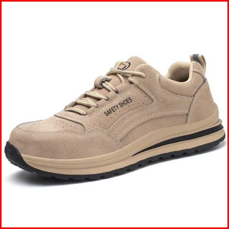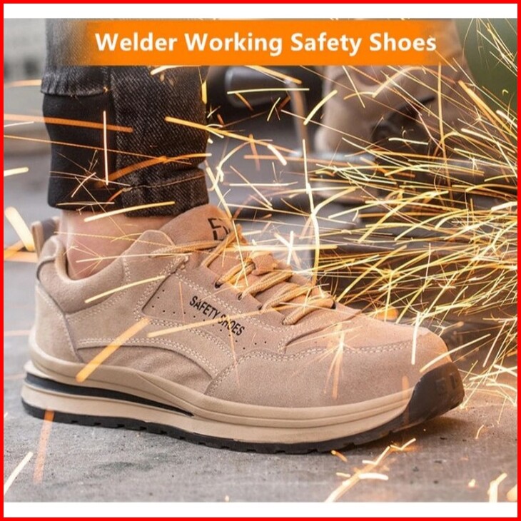 Sepatu Keselamatan Kerja Pria Dan Wanita N01 Ujung Besi Bahan Kulit Sapi Warna Coklat Muda Dan Abu Abu Tua