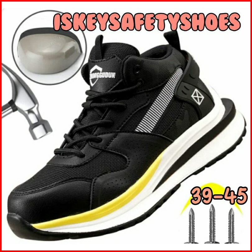 Sepatu Safety Sneaker Hitam List Kuning Import