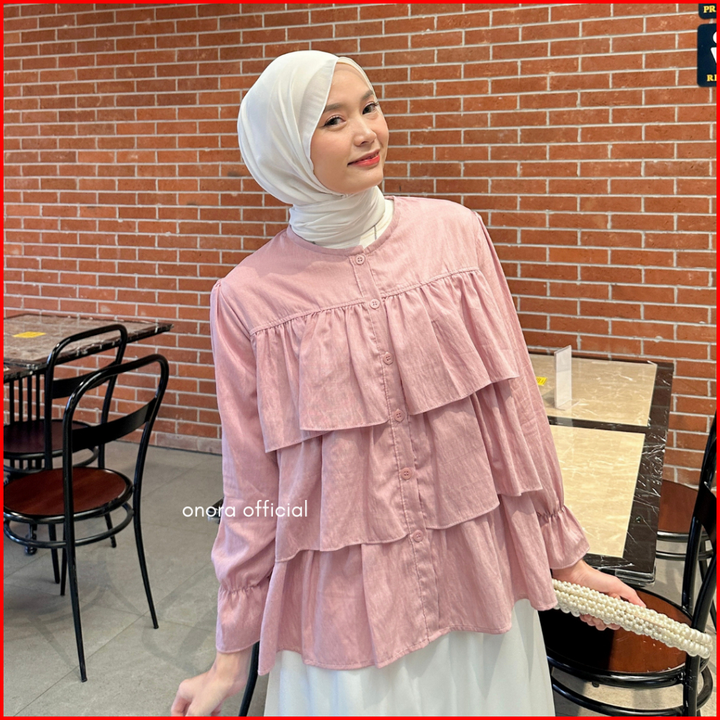 Onora - Blouse Wanita Dewasa Atasan Baju Bahan Pololinen Ruffle Lengan Panjang Dalia