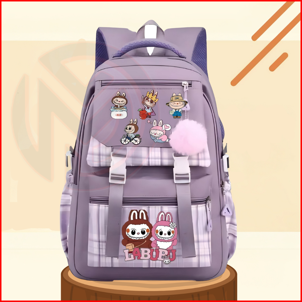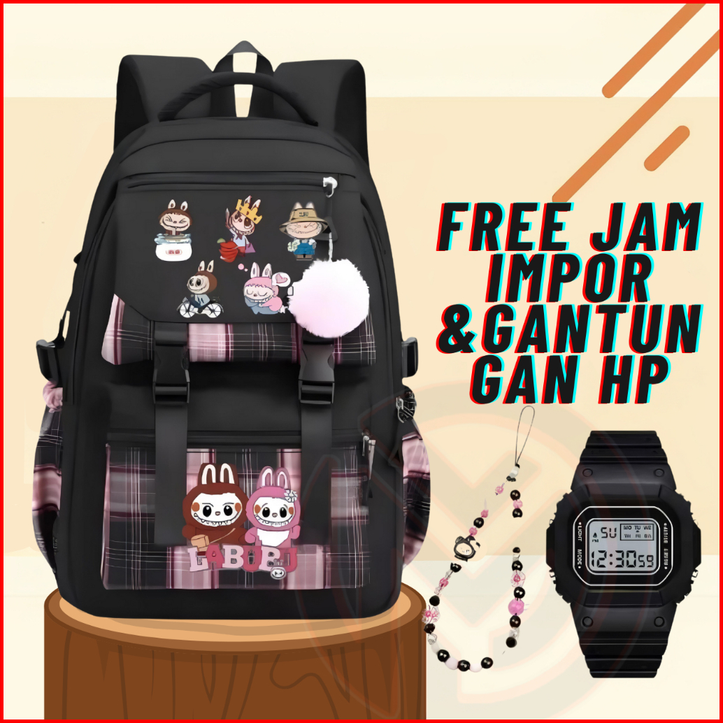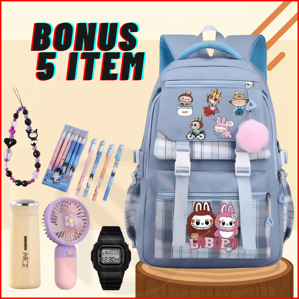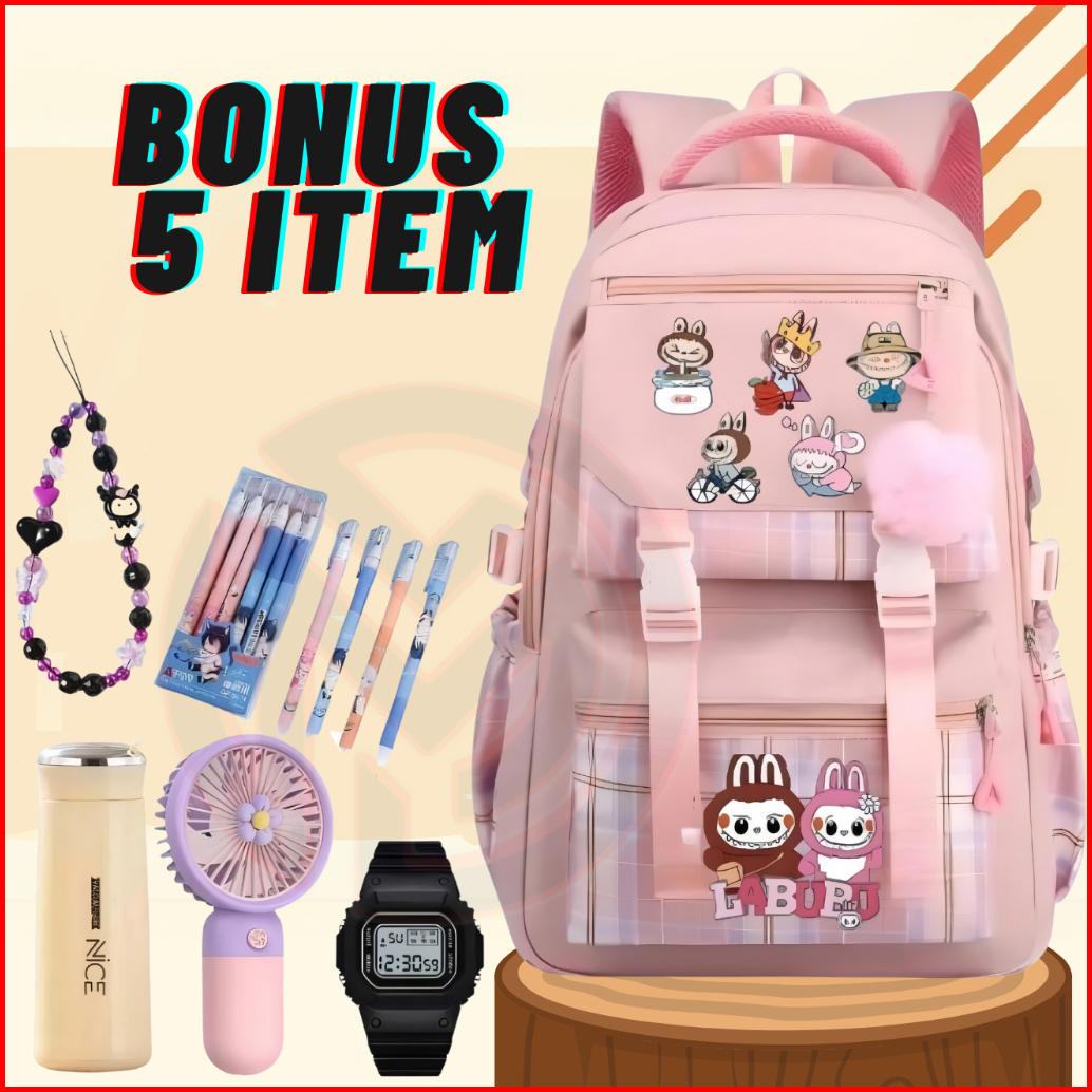 Tas Ransel Anak Perempuan Labubu Bags Tas Sekolah Anak Sd Smp Free Botol Minum Jam Impor Kipas Mini 4pena Gantungan Hp