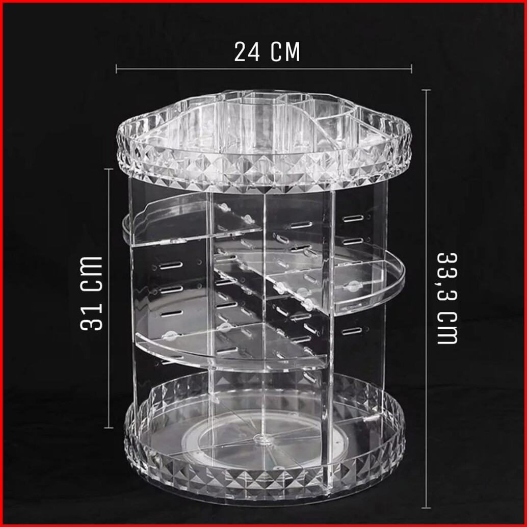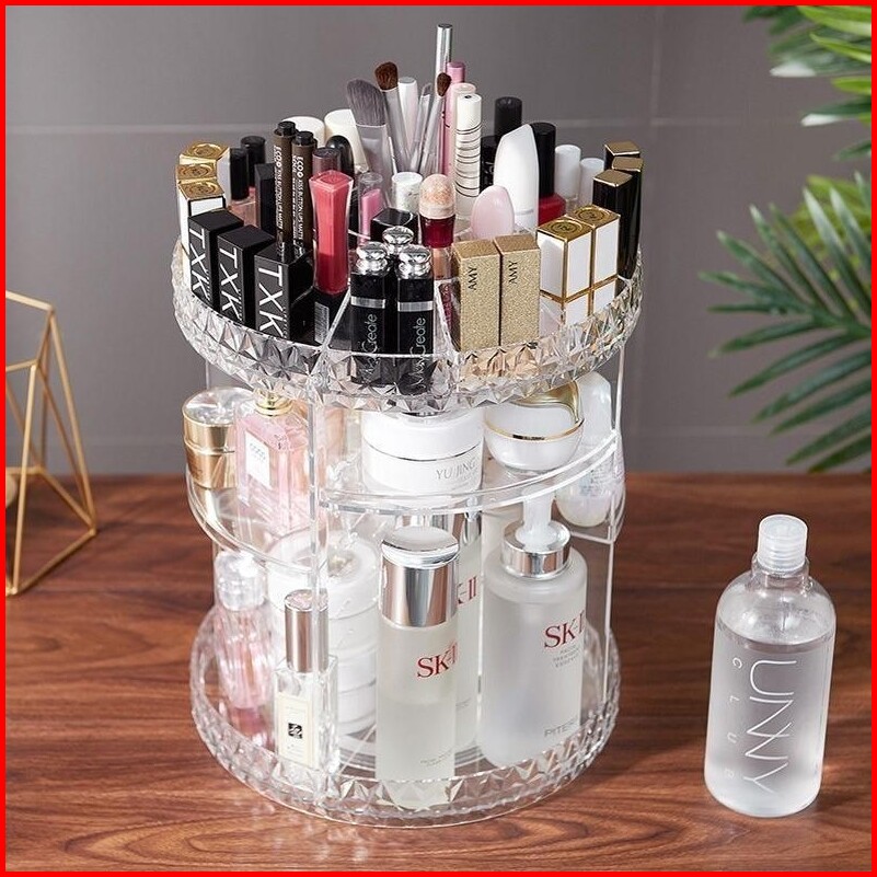 Rak Make Up Kosmetik Petak Acrylic Putar 360 Derajat Diamond Transparan Organizer Makeup Penyimpanan