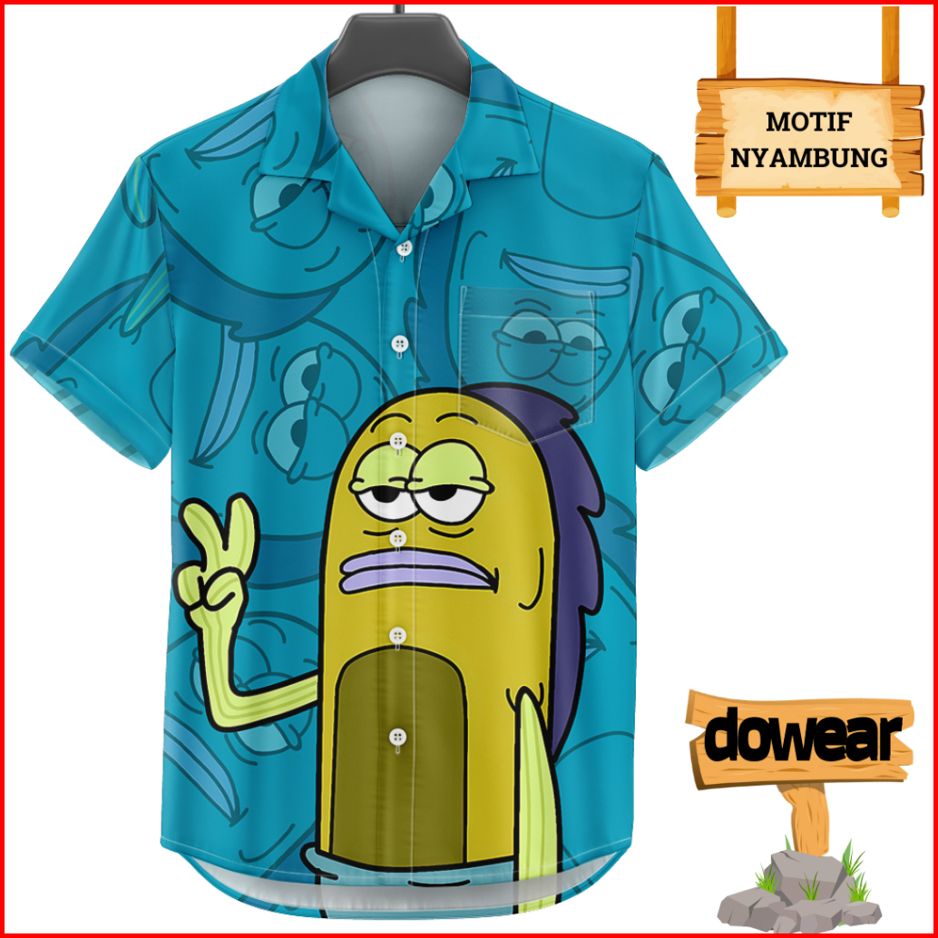 Dowear S-5xl Baju Kemeja Motif Pantai Cowok Cewek Spongebob Hawai Jumbo 873 Marty