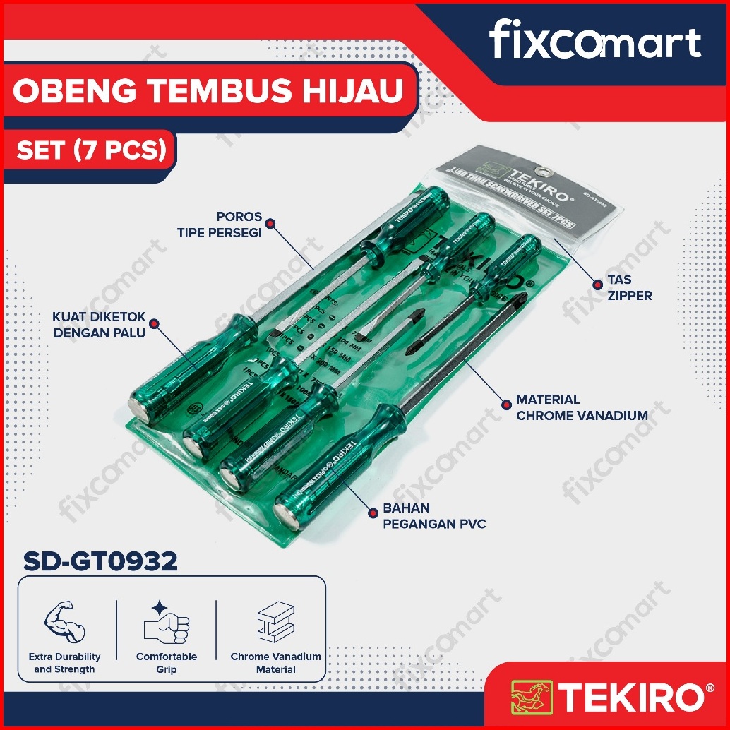 Tekiro Obeng Set 7 Pcs Tembus Hijau Tekiro Obeng Go Thru