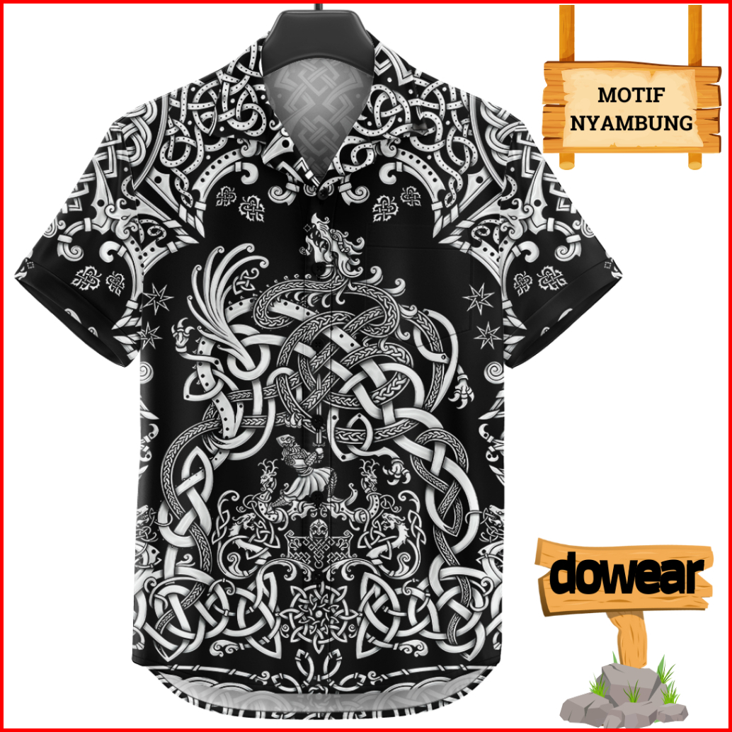 Dowear Baju Kemeja Motif Cewe Cowo Full Printing Jumbo S-5xl 841 Black Dragon