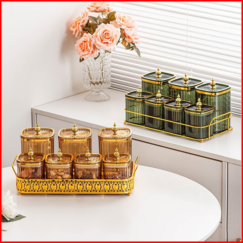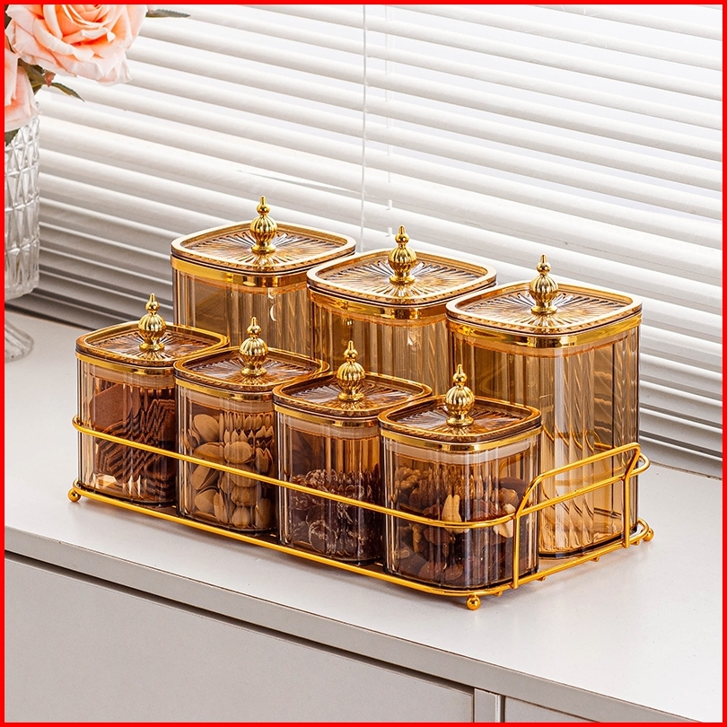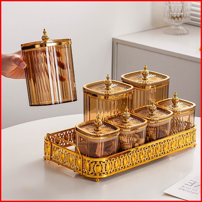 7pcs Toples Set Mewah Snack Tray Jar Snack Bowl Tempat Saji Snack Cemilan Kotak Makanan Toples Lebaran Set Nampan Toples