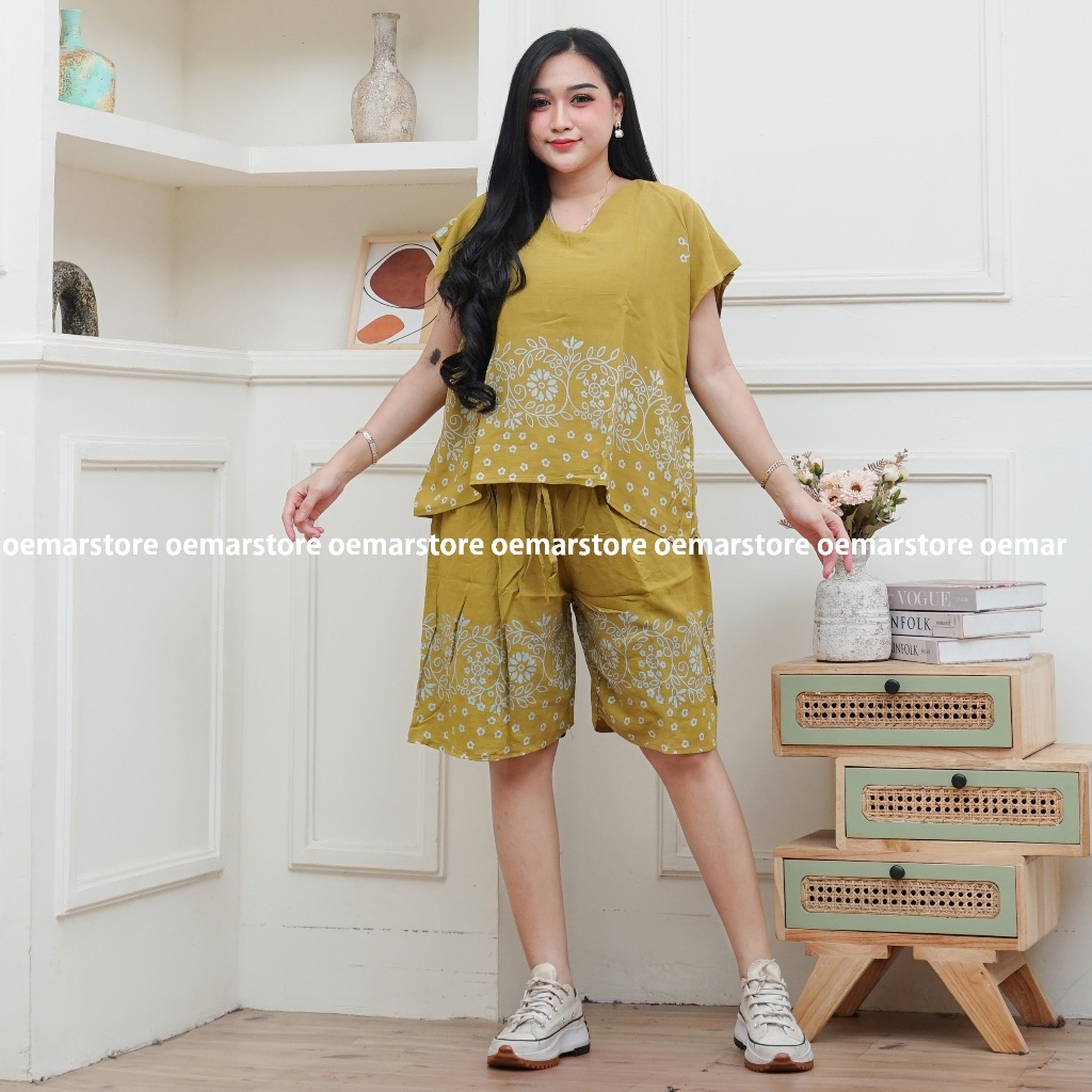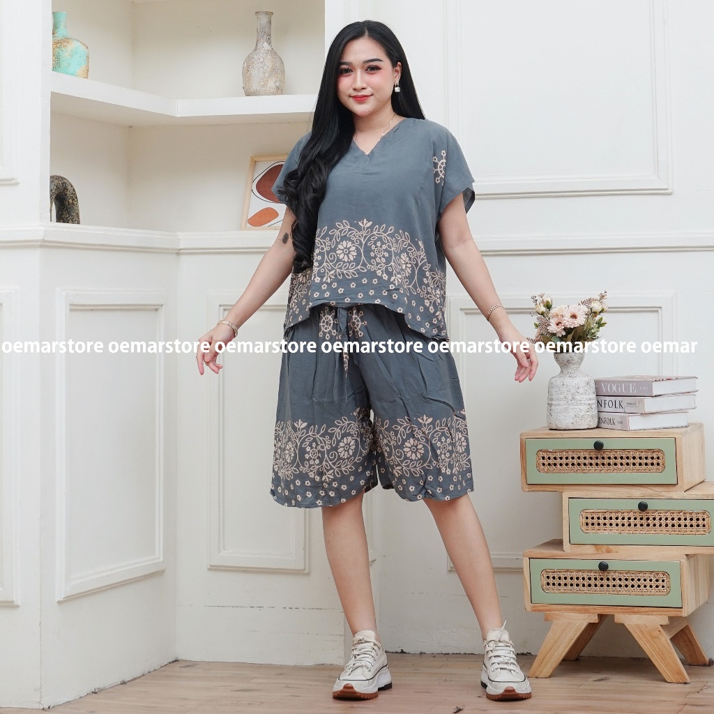 SETELAN BAJU TIDUR CELANA PENDEK BALI RAYON || LD 120 BB 40 -85 KG || MOTIF DAUN