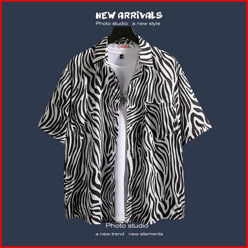 Kemeja Pria Shirt Leopard Kemeja Pria Lengan Pendek Kemeja Leopard Pria Kemeja Hawai Pria