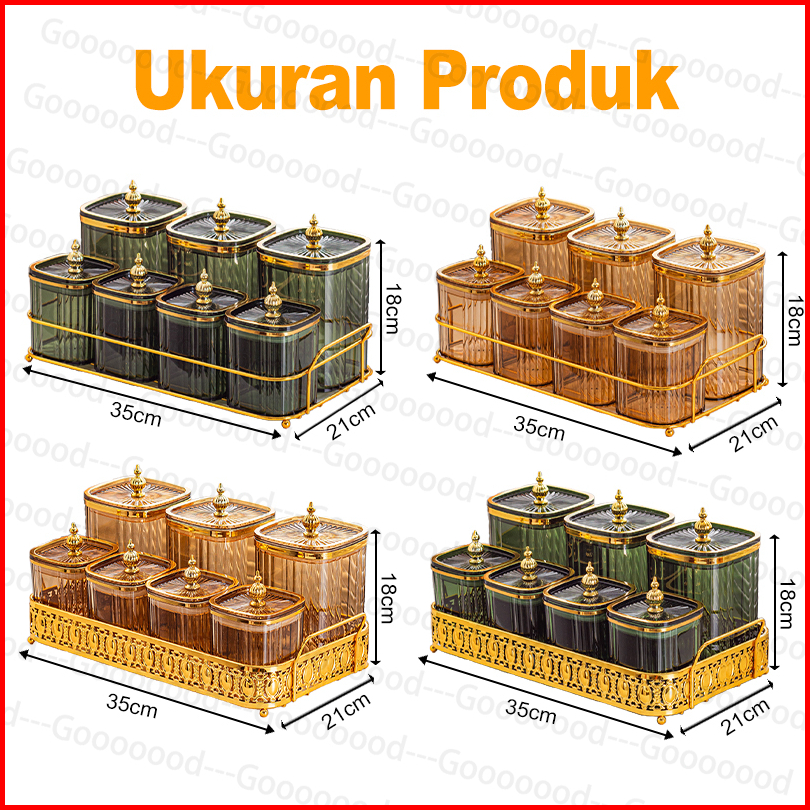 Set 7 Buah Toples Camilan Dengan Dudukan Besi Toples Penyimpanan Kue Toples Kotak Makanan Set Toples Lebaran