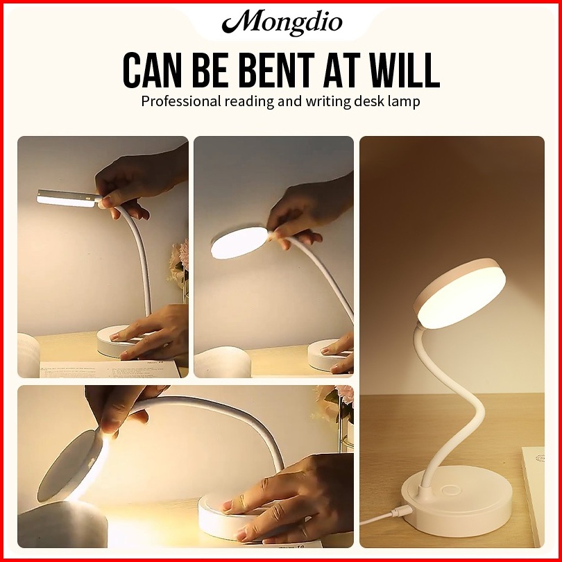 Mongdio Lampu Belajar Led Usb Wireless Lampu Meja Led 3 Warna 2000mah