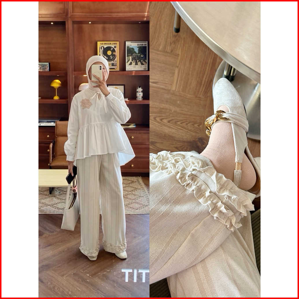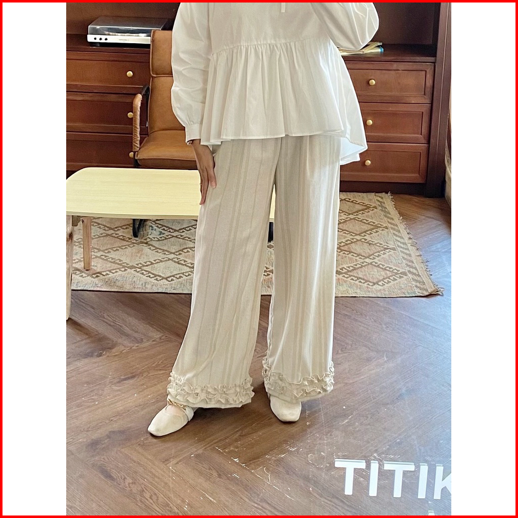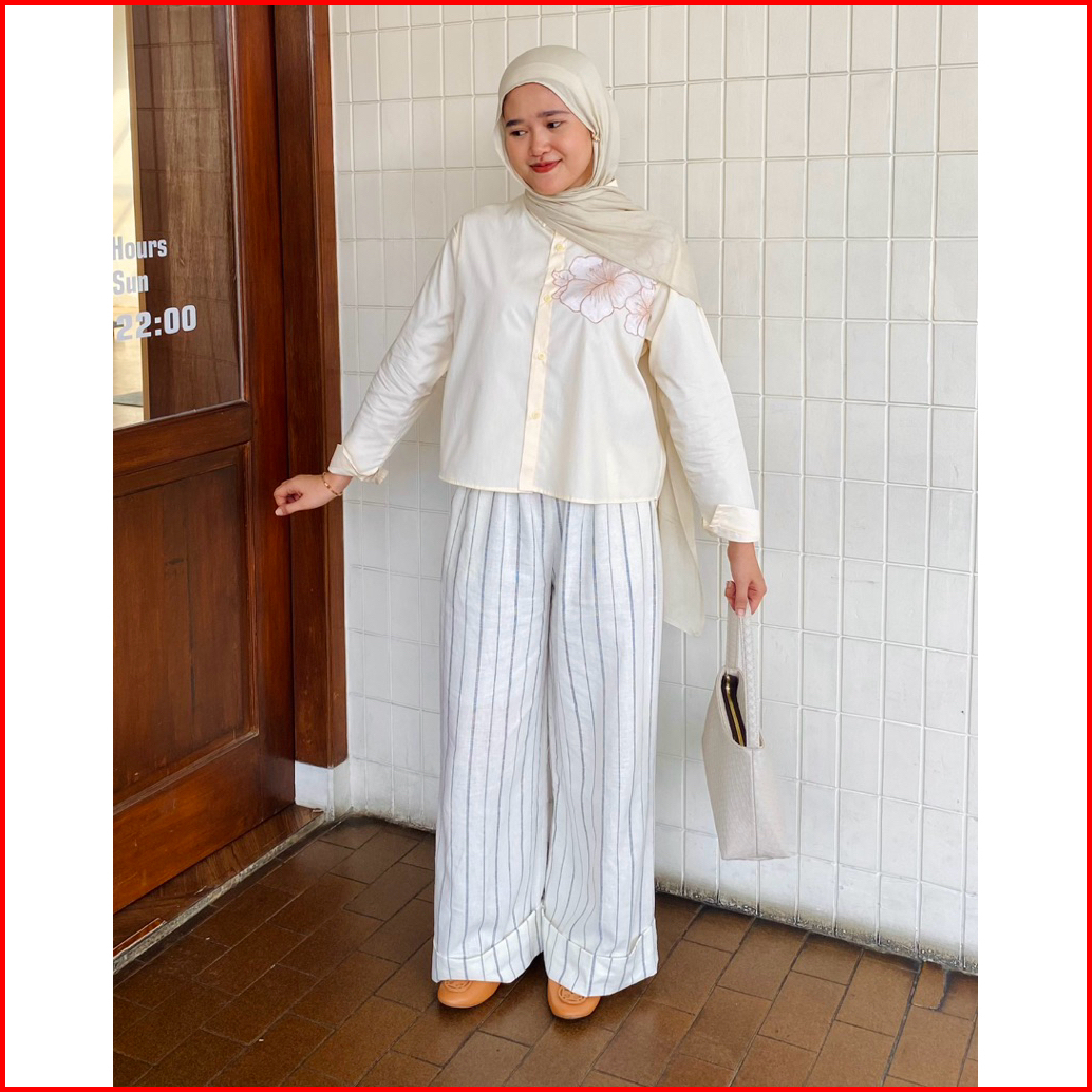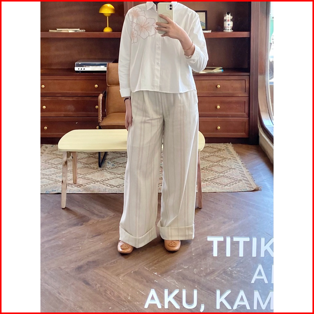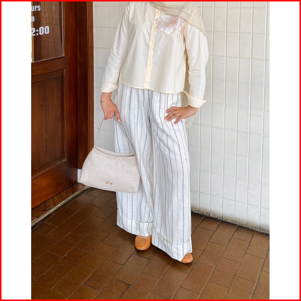 Baylera - Linen Stripe Pants Celana Kulot Wanita Salur - Celana Panjang Wanita Linen Salur