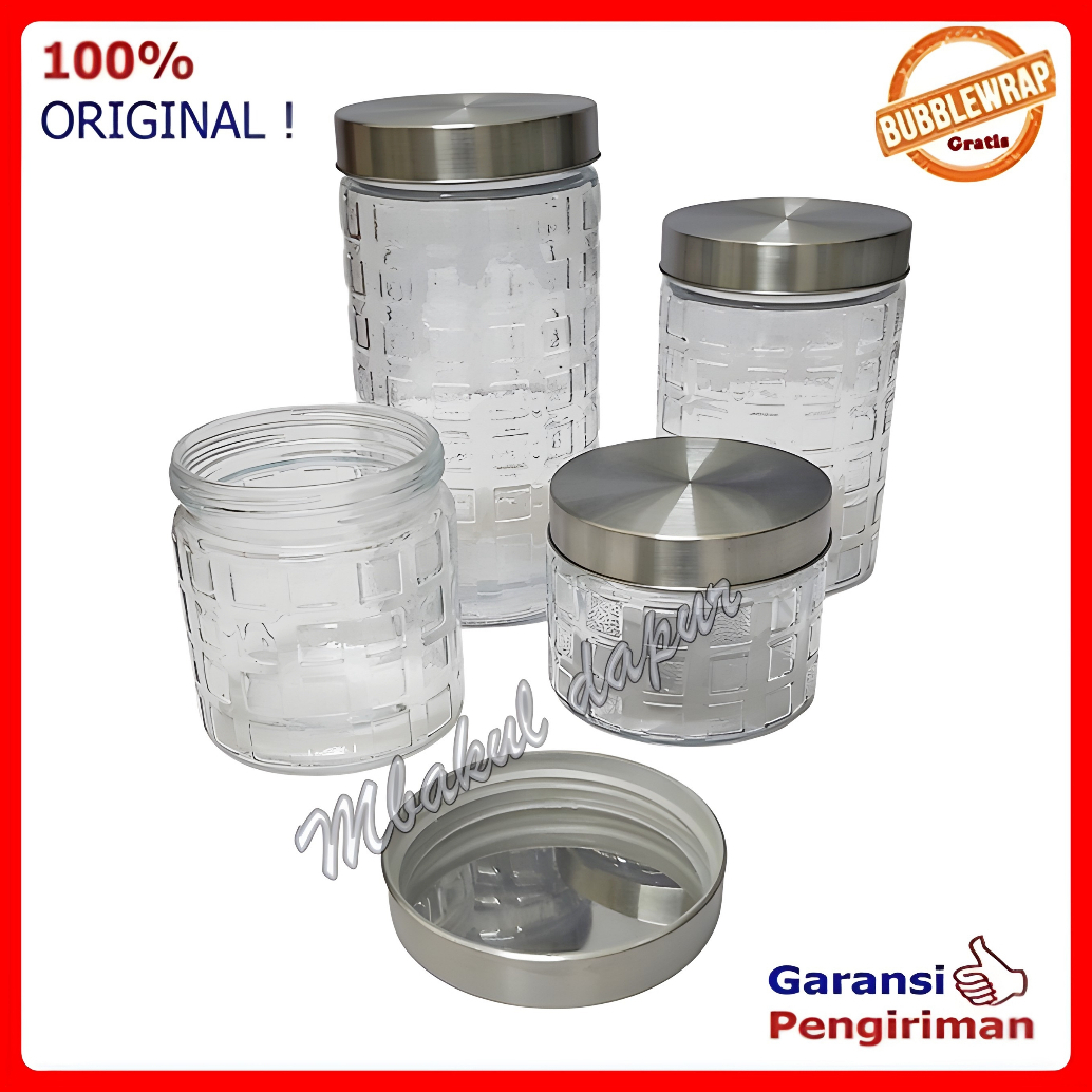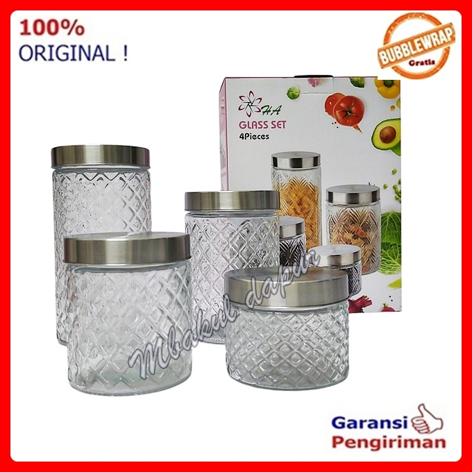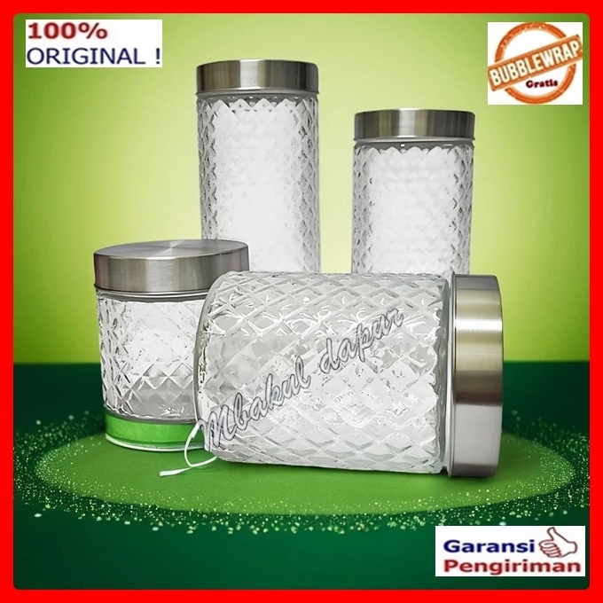 Toples Kaca Set Toples Lebaran Set Diamond Look Toples Kue Kering Isi 4pc Tebal Kedap Udara Dus Kado