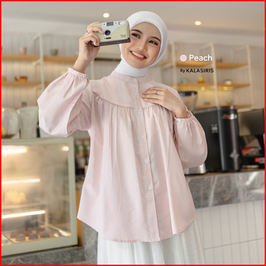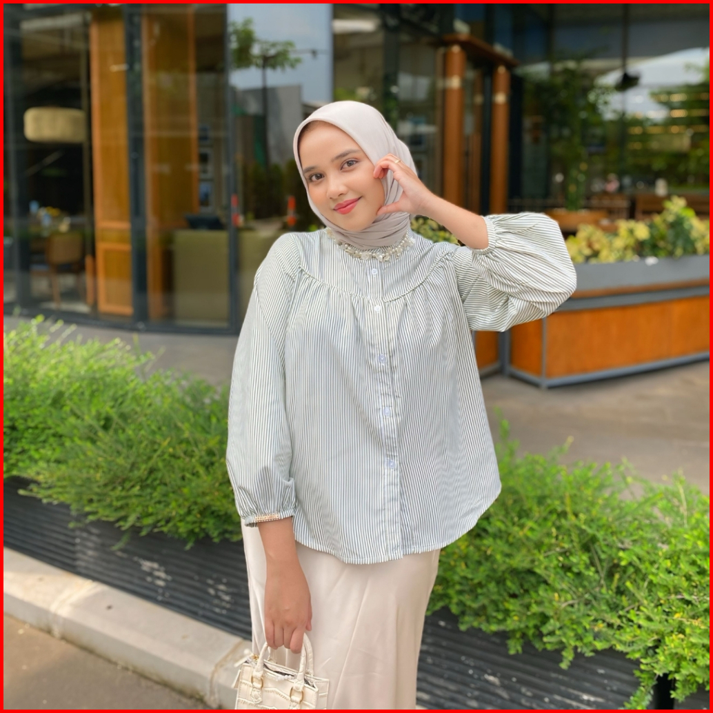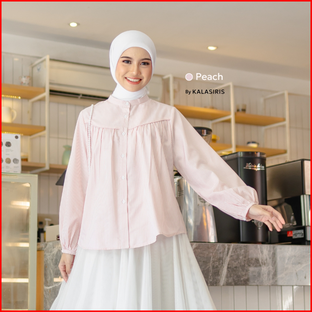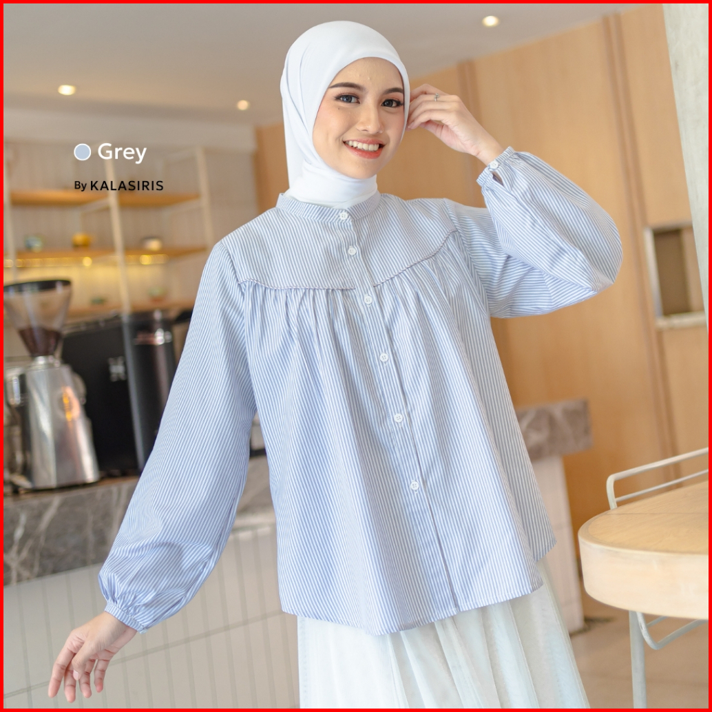 Nibras Hijab X Kalasiris Blouse Tunik Atasan Polos Semi Formal Saluria - Fiona Stripe Series