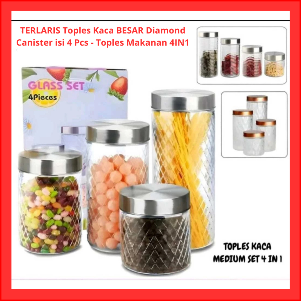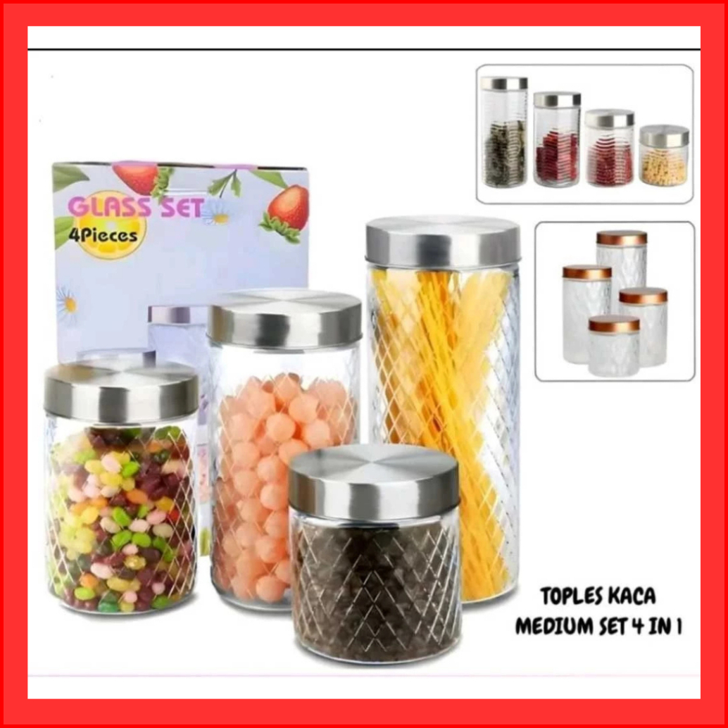 Toples Kaca Medium Set 4 In 1 Toples Kue Lebaran Elegant Mewah