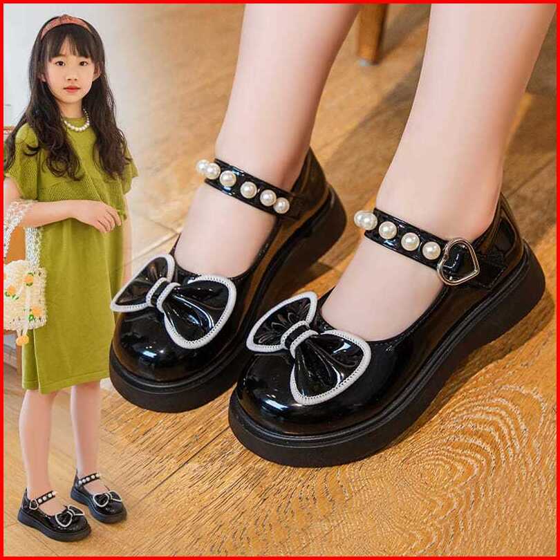 Sepatu Pesta Anak Docmart Motif Pita Tali Mutiara Trending Sepatu Docmart Anak Perempuan Umur 3-10 Tahun Model Terbaru 2