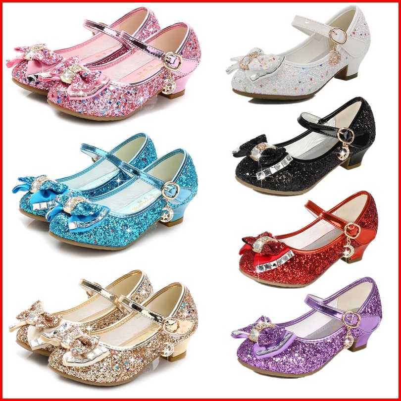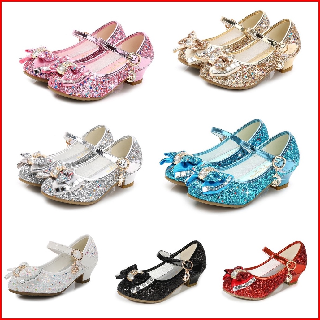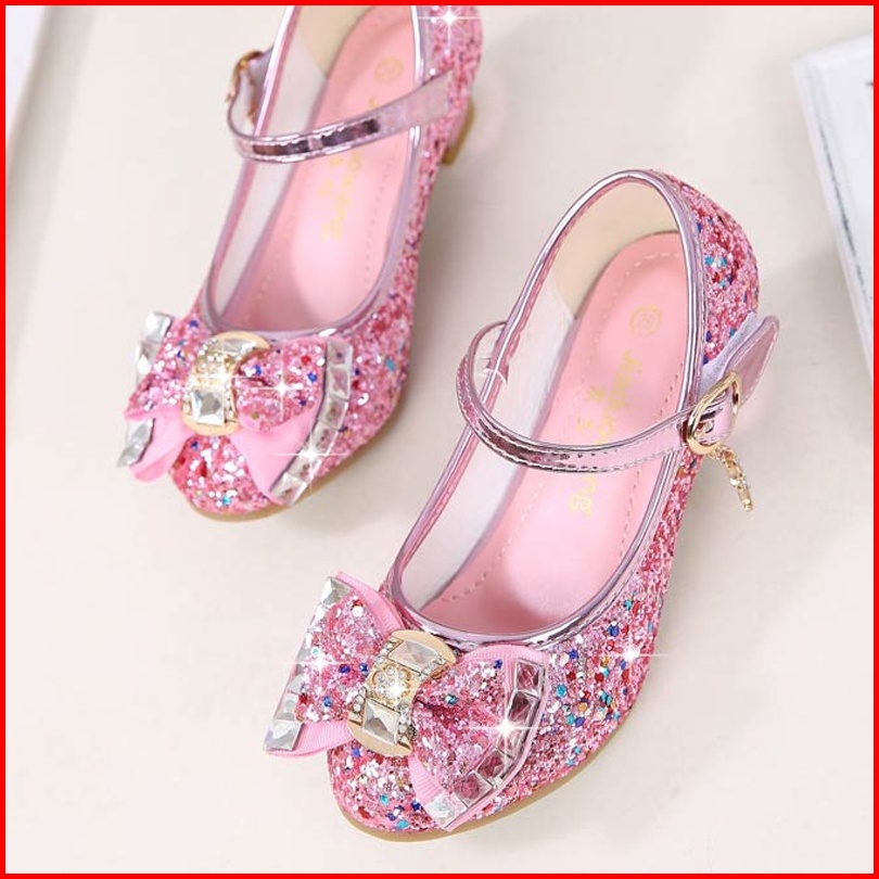 Sepatu Kulit Kupu-kupu Malam Putri Sepatu Glitter Tari Anak-anak Perempuan Hak Tinggi Ikatan Simpul Berlian Anak-anak Se