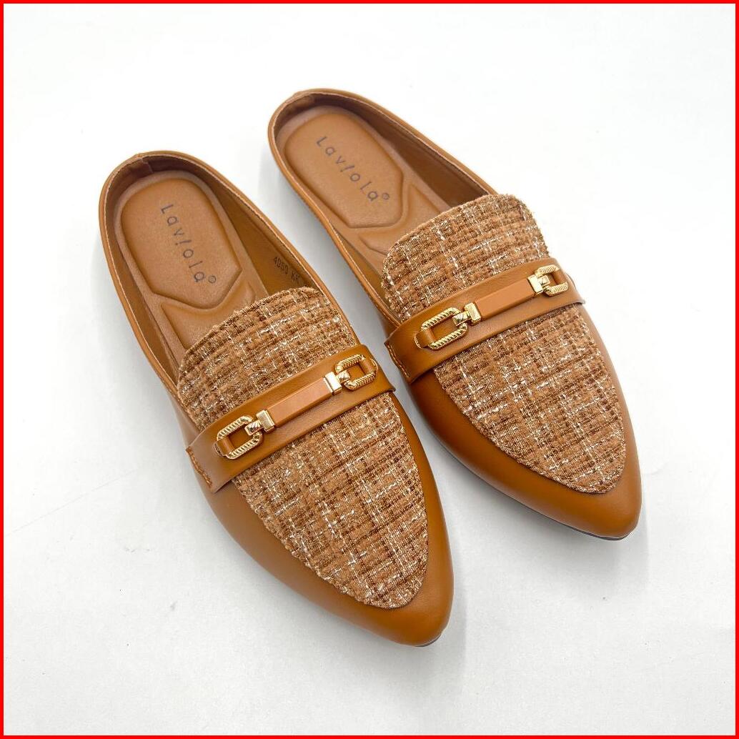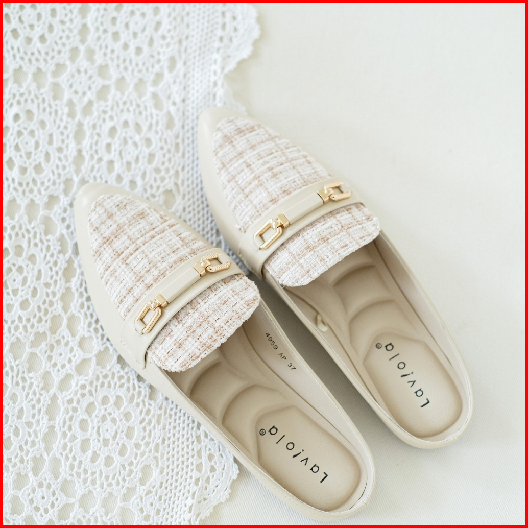 Laviola 4959 Msh - Sandal Mules Wanita Kombinasi Bahan Tweed