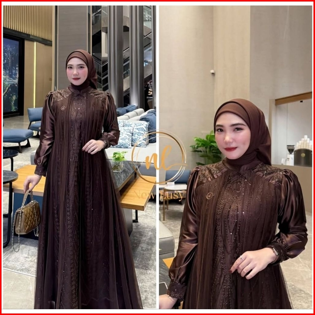 Aleya Dress Pesta Kondangan Mewah Elegan Gamis Muslim Nyaman Glamour Berbahan Velvet Premium