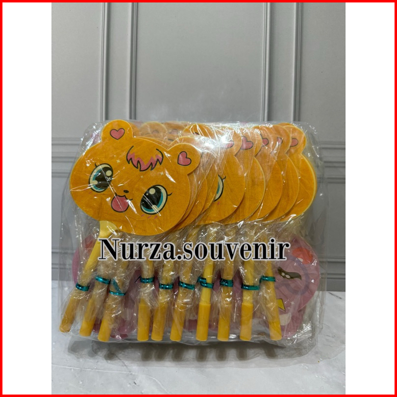 Isi 50pcs Souvenir Kipas Pulpen Karakter Kemasan Plastik Gratis Kartu Ucapan Terimakasih