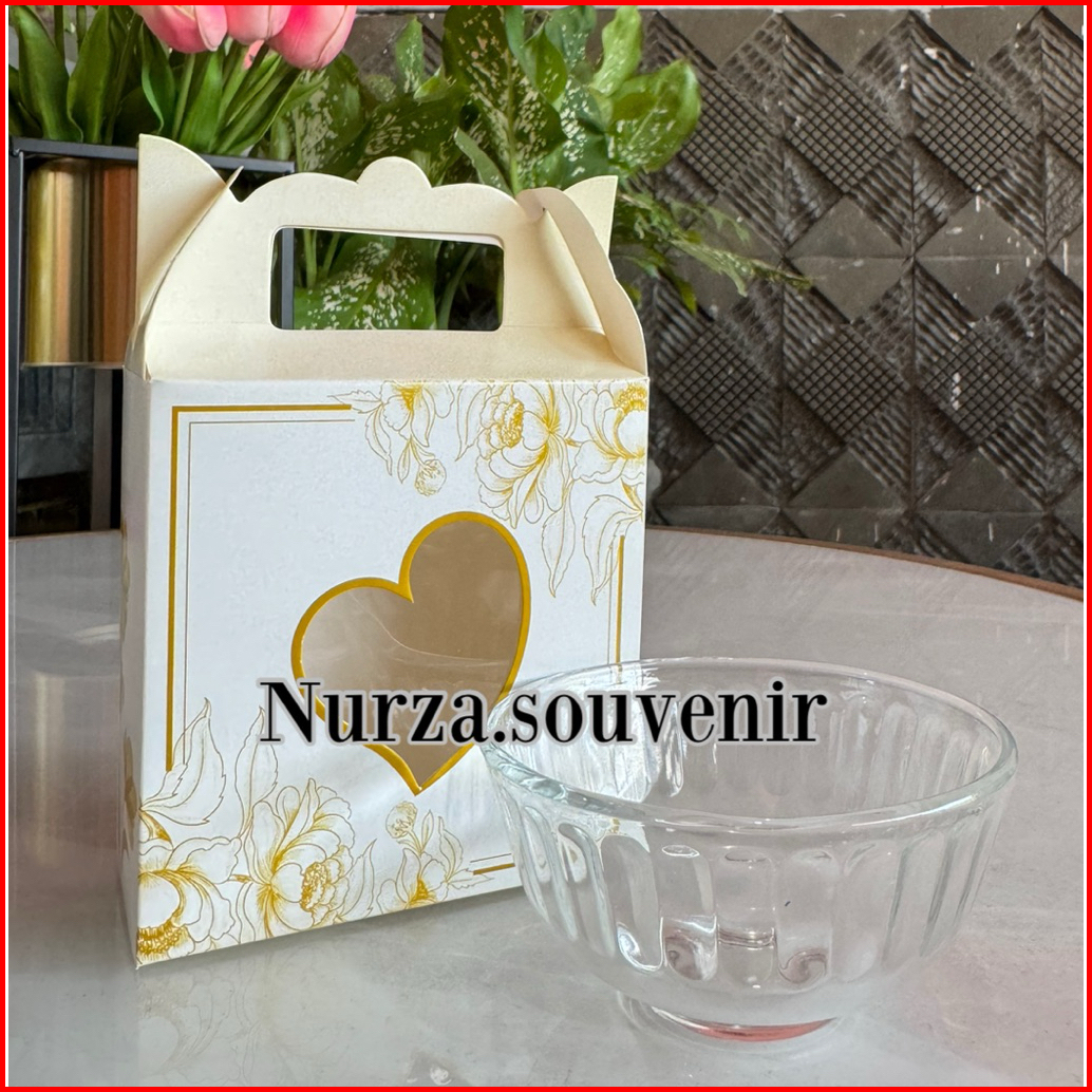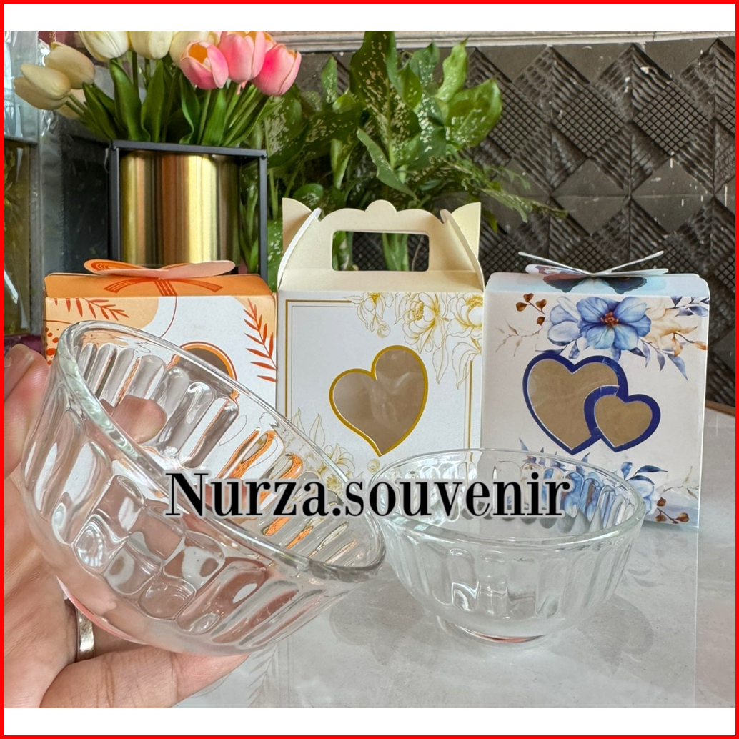 Isi 50pcs Souvenir Mangkok Beling Motif Garis Keliling Kemasan Box Cantik