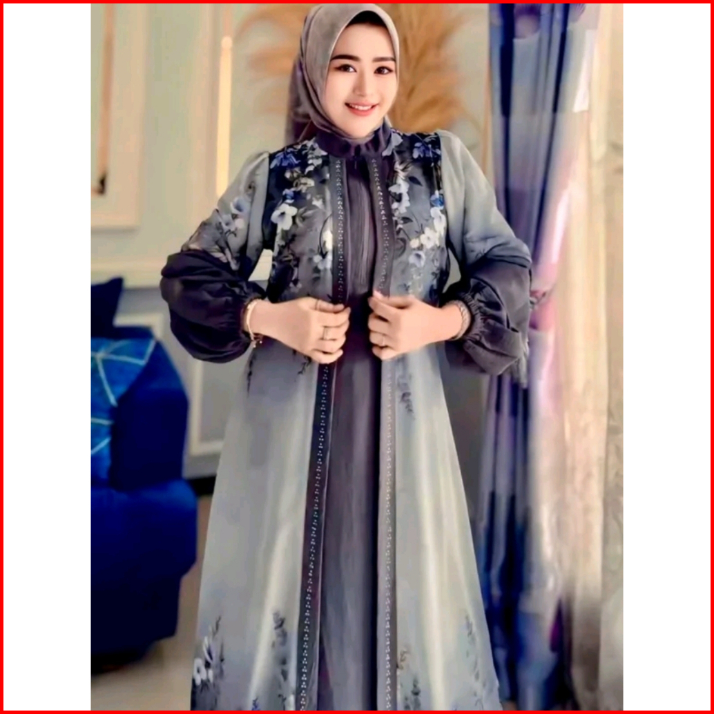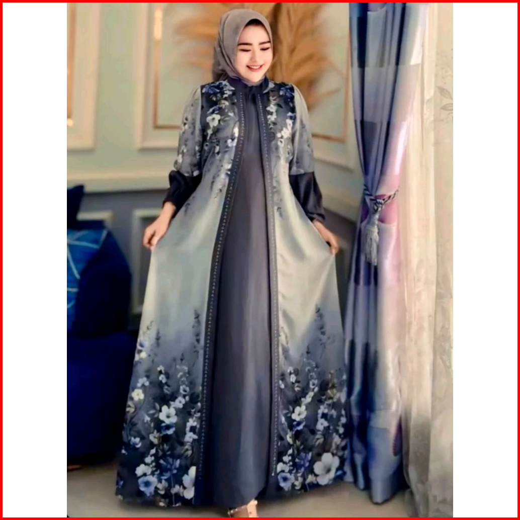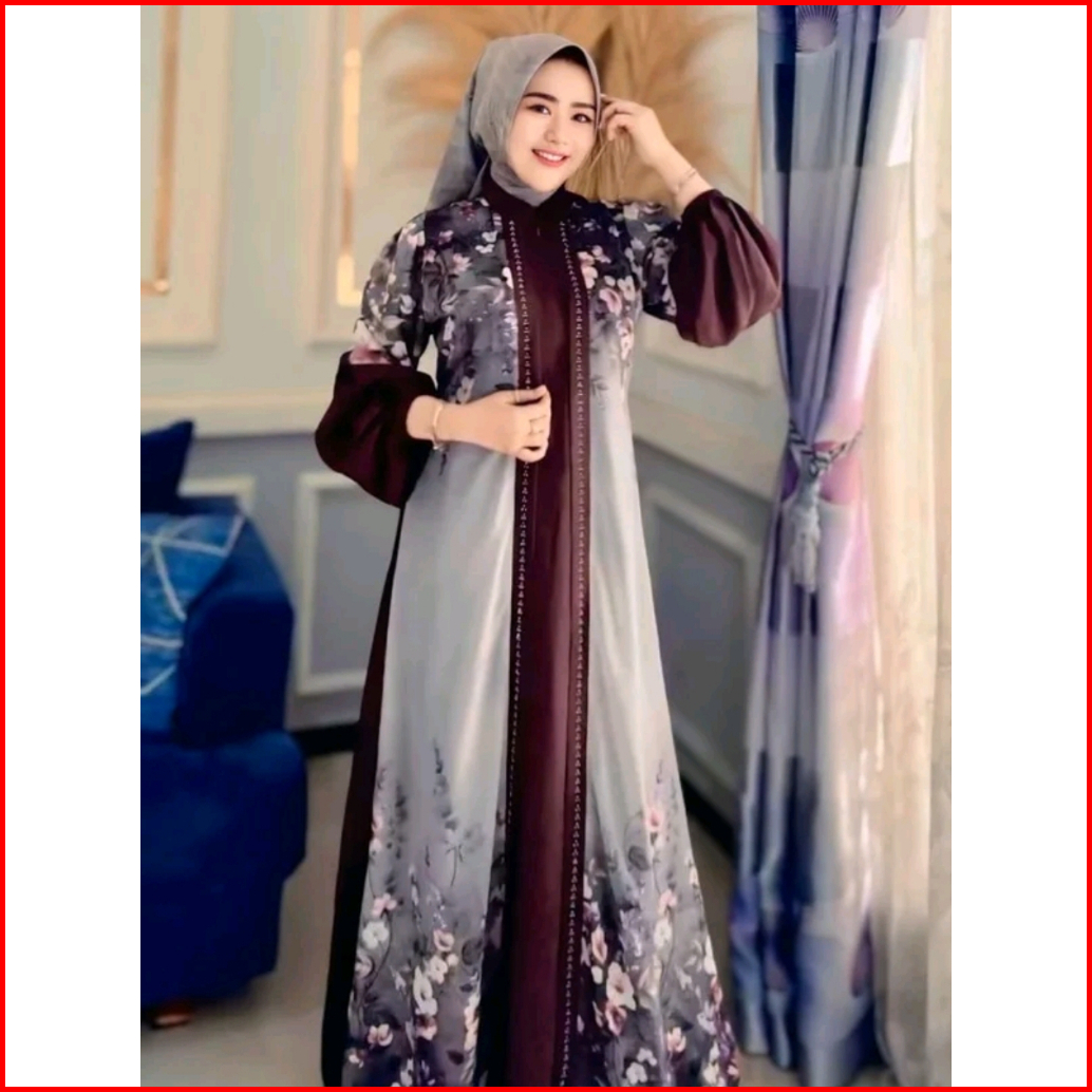 Gamis Dinara Queen Maxy Mix Ceruti Motif Bunga Busui Outer Nyatu