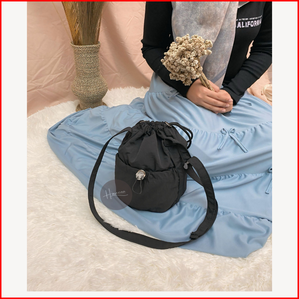 Haseena Tas Bahu Serut Wanita Safia Nylon Polos Casual Crossbody Mini Waterproof