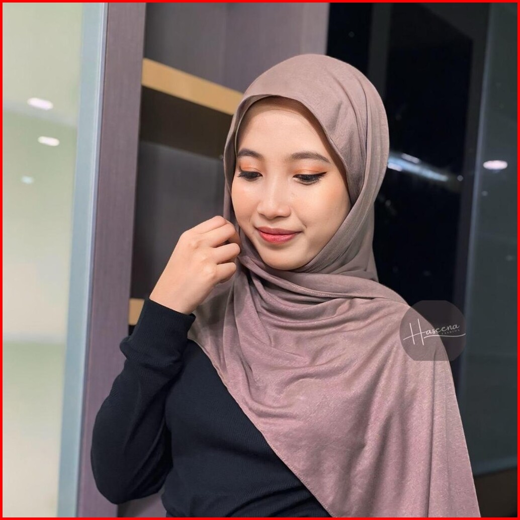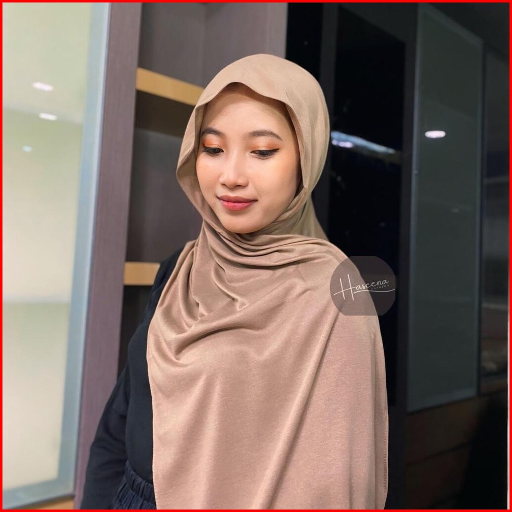 Haseena Hijab Pashmina Kaos Oval Jaydra Polos Flowy Jilbab Rayon Basic Stretch Kekinian