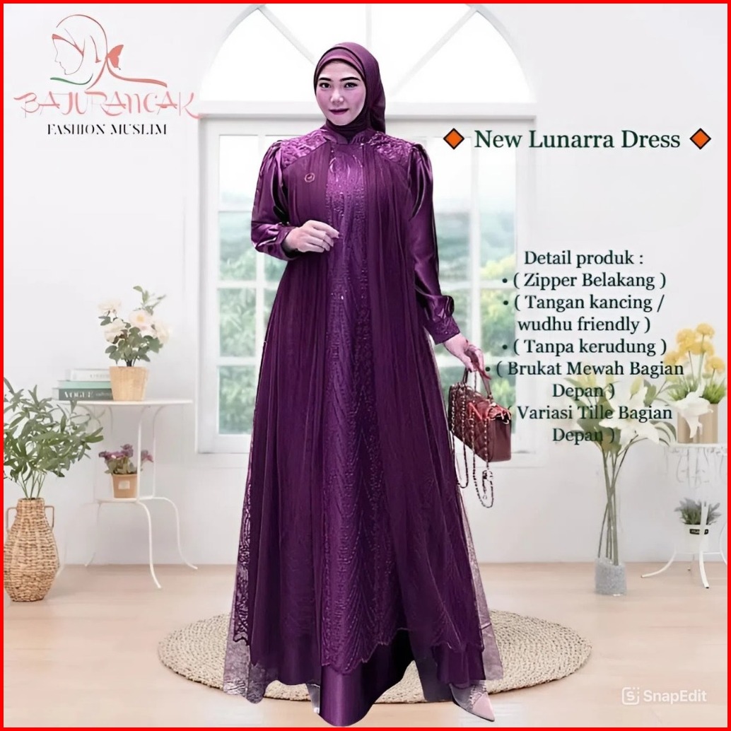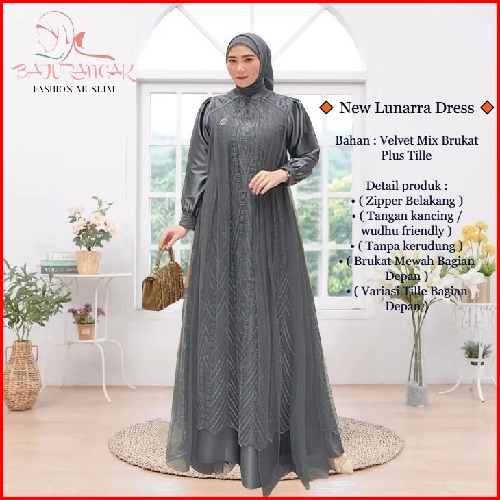 Lalunna Lace Baju Gamis Brokat Mewah Elegan Raya Trend 2025 Wanita Muslimah Pesta Ceruty Babydoll