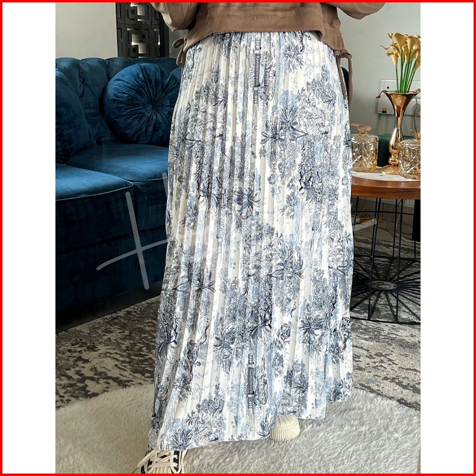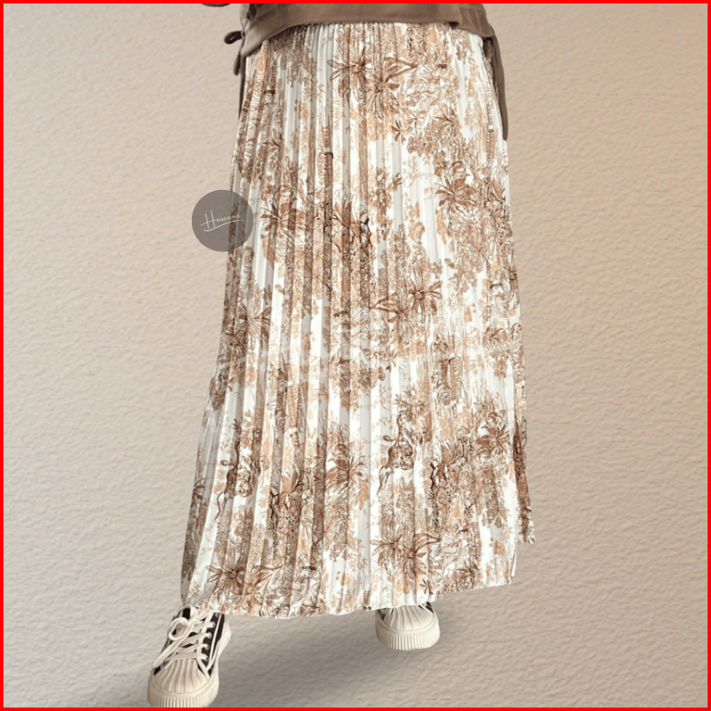 Haseena Rok Plisket Mietaa Motif Klasik Prada Wanita Skirt Ruffle Vintage Anti Nerawang