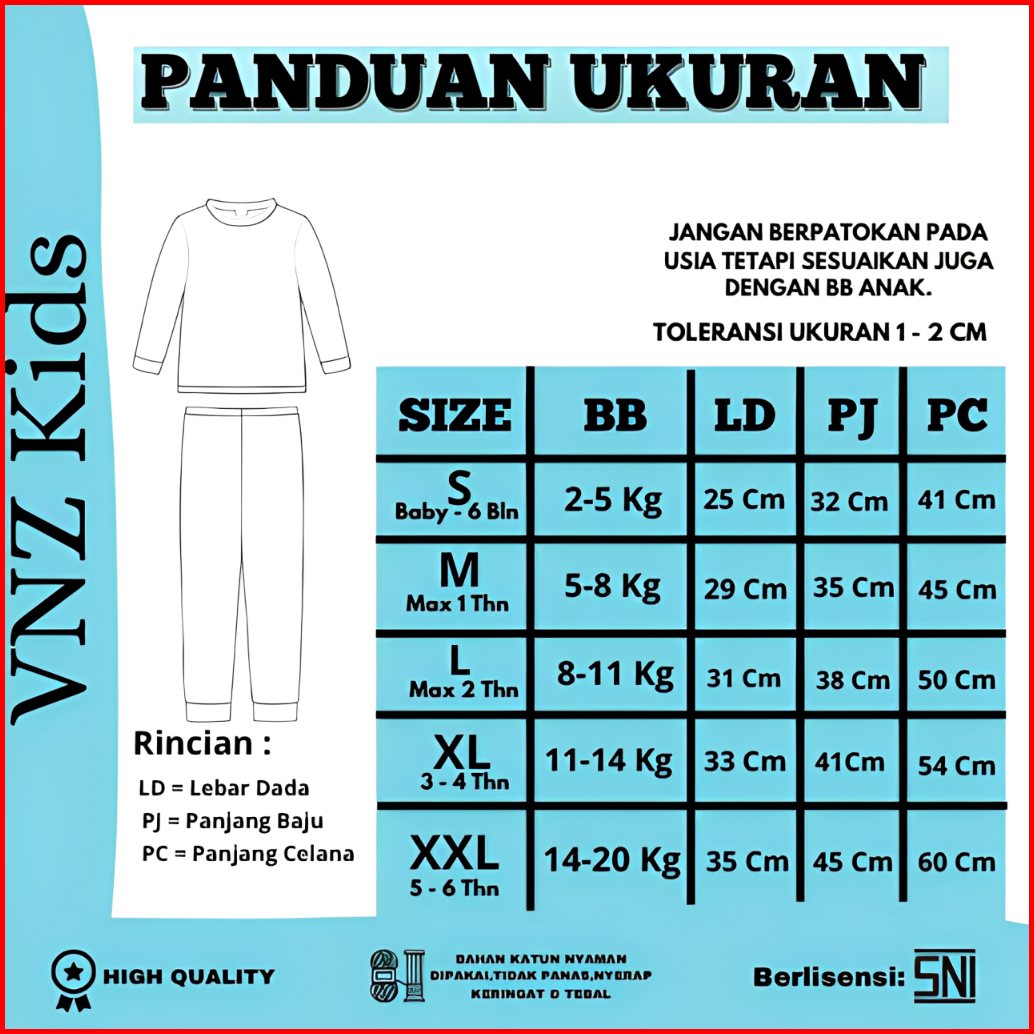 Vnz Kids - Setelan Baju Anak Full Gambar Usia Baby - 6 Tahun Setelan Baju Tidur Anak Motif Animal