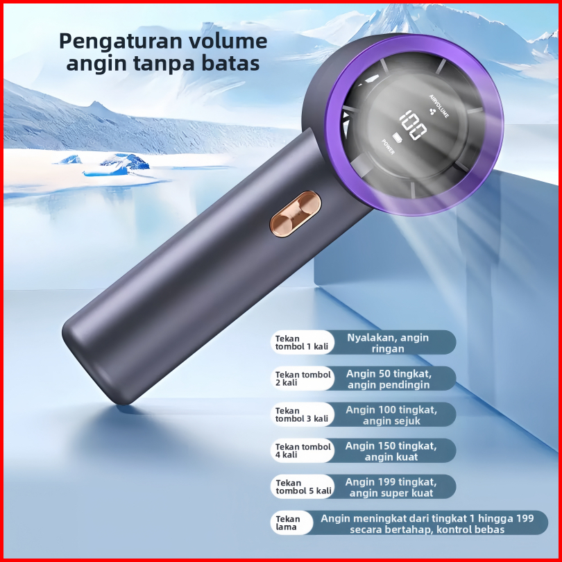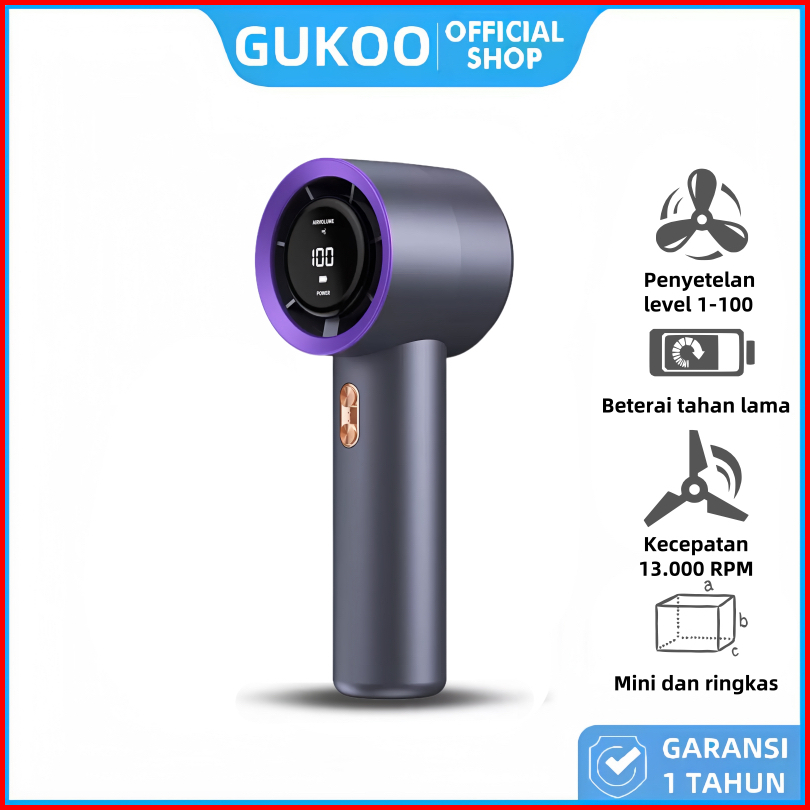 Gukoo Untuk Performa Terbaik Kipas Mini Super Kencang 13000 Rpm - Baterai Tahan Lama - 100 Level Kecepatan - Usb Portabl
