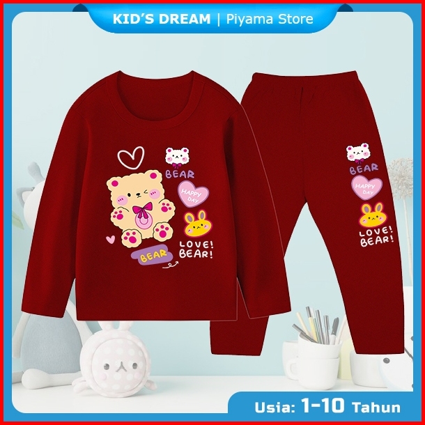 Baju Tidur Gambar Beruang Love Bear Setelan Kaos Celana Panjang Anak Cewek Cowok Ukuran 1-10 Tahun 1597-kd