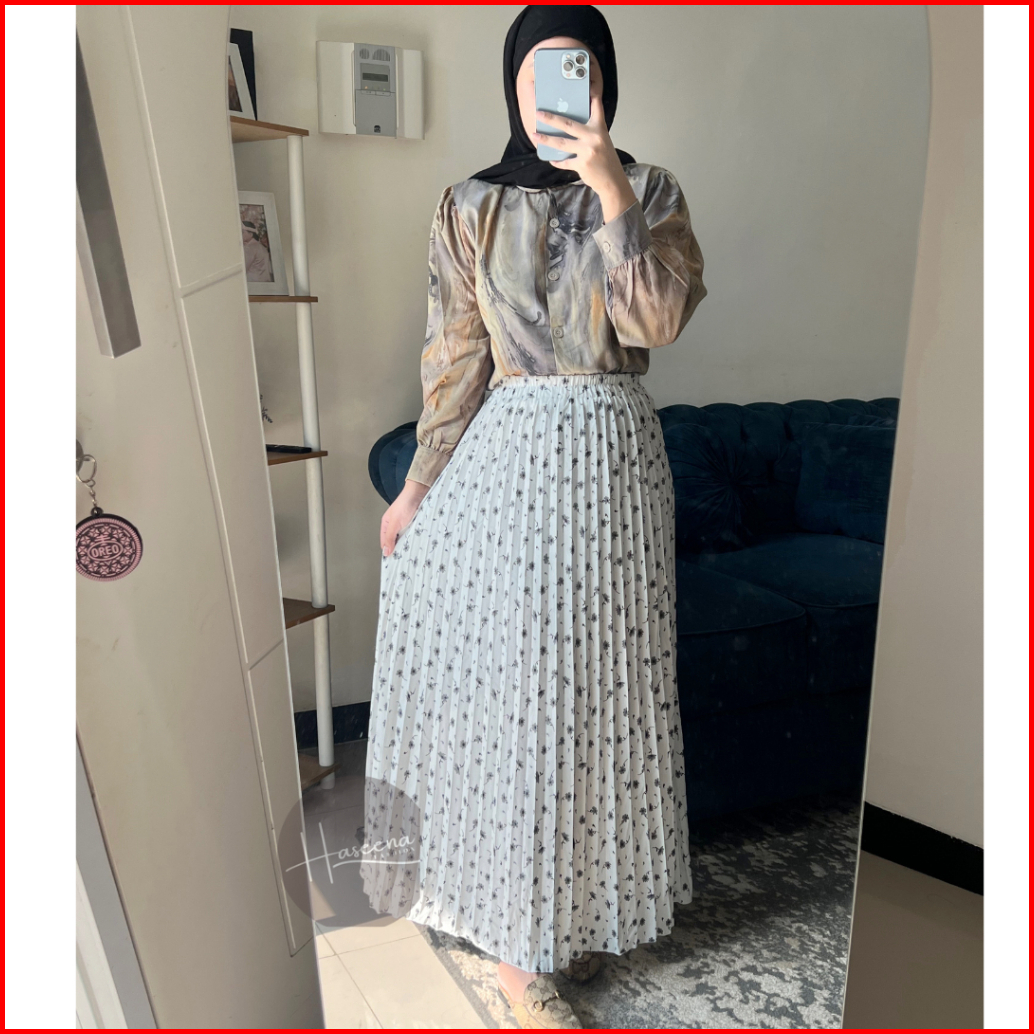 Haseena Rok Plisket Mietaa Susun Motif Bunga Melati Rok Wanita Skirt Ruffle Anti Nerawang
