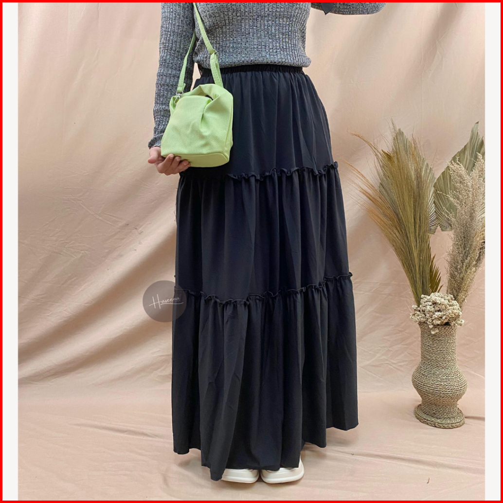 Bundle Stylish Haseena Rok Tiga Susun Azzura X Tas Zakia Kulit Kekinian