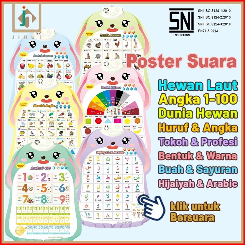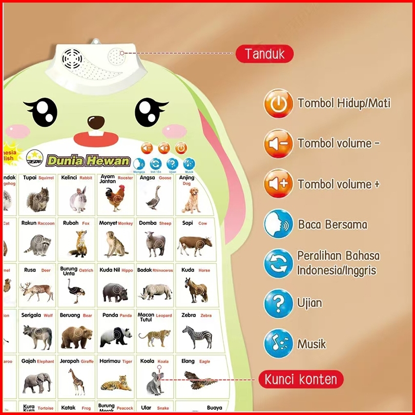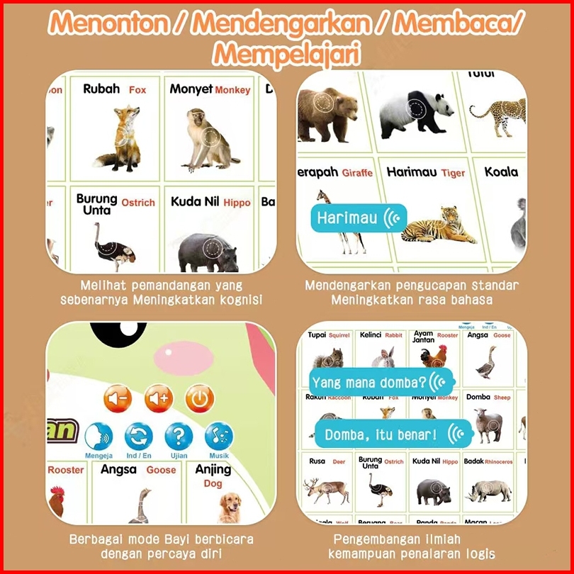 Jihui Poster Dinding Suara Indonesia Inggris Edukasi Anak Belajar Poster Hewan Edukasi Anak