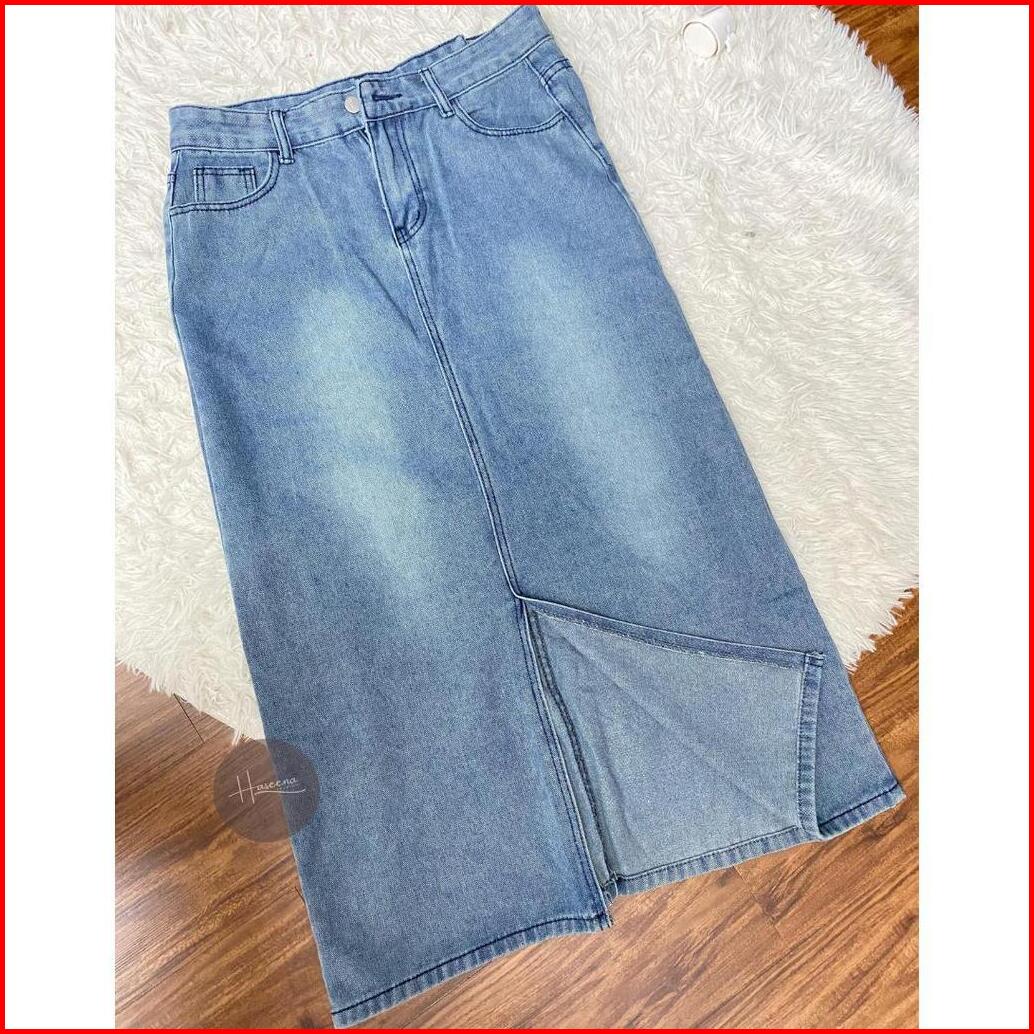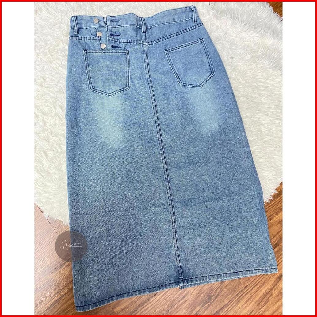 Haseena Rok Jeans Wanita Farra Highwaist Midi Non Stretch A-line Denim Ladies Skirt 510
