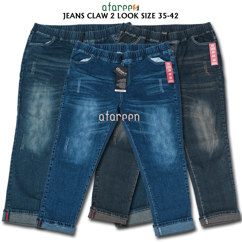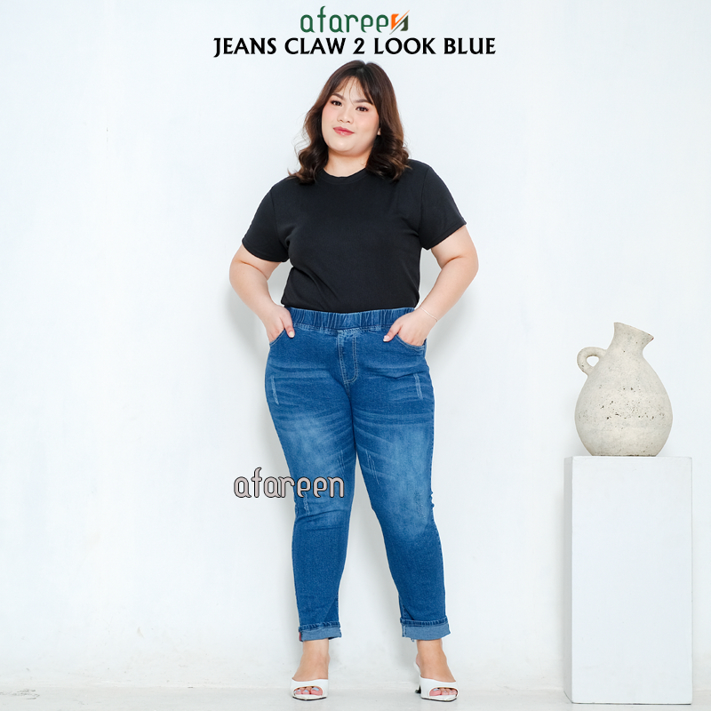 AFAREEN - Celana Jeans Wanita Jumbo Jeans Pinggang Karet Wisker Big Size 35-42