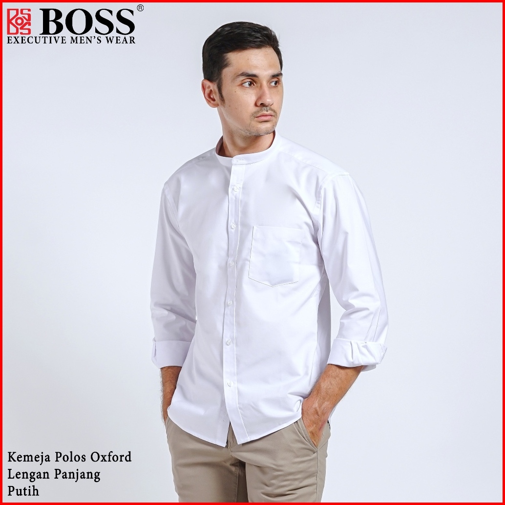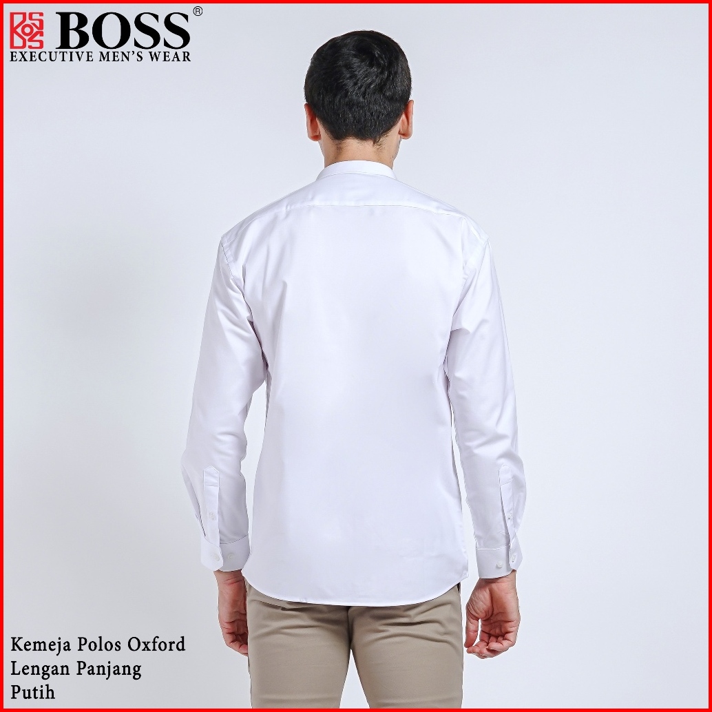 Boss Kemeja Polos Basic Pria Oxford Shanghai Lengan Panjang Slim Fit Ox Putih