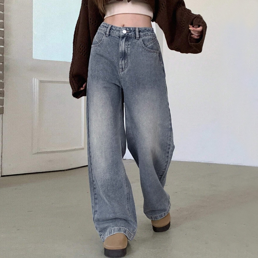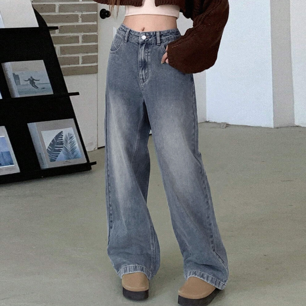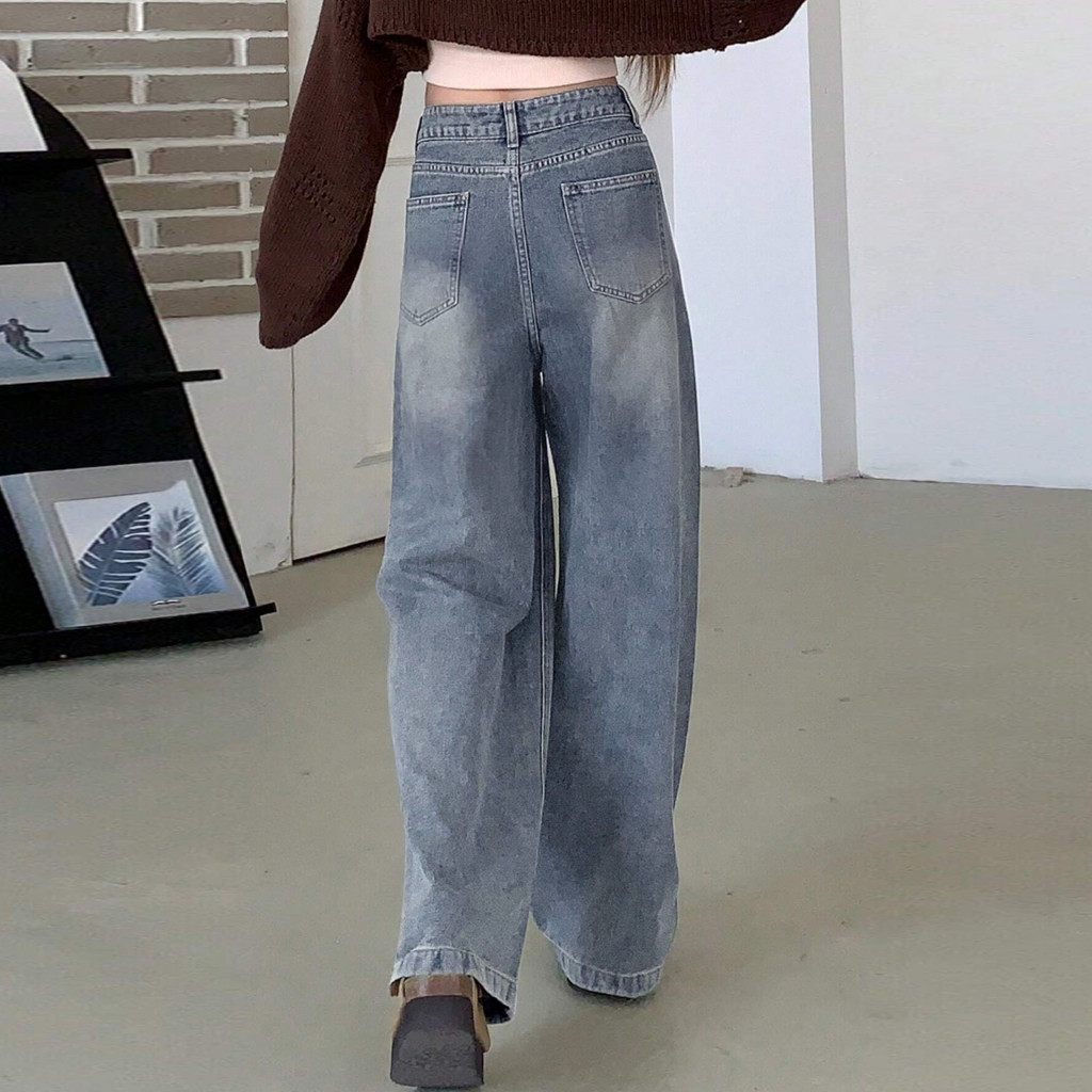 Baffel Jeans Terbaru Loose Wide Leg Jeans Wanita Panjang High Waist Korean Style Casual Fashion Mopping Pants